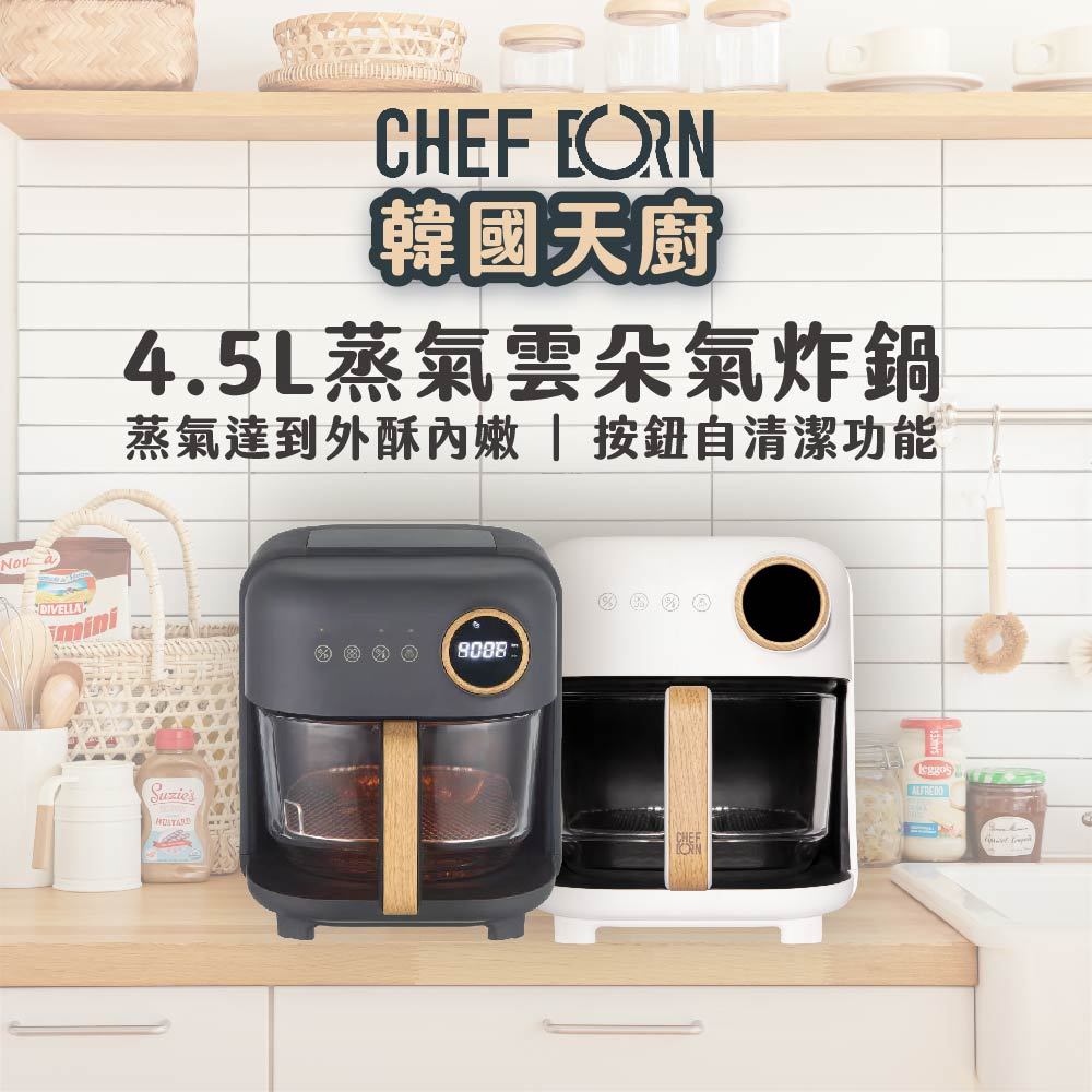 【CHEFBORN韓國天廚】4.5LAir蒸氣雲朵氣炸鍋 熱銷萬台的全能家庭料理小幫手蒸霧白|石墨黑Air Fryerselenire 品牌旗艦館