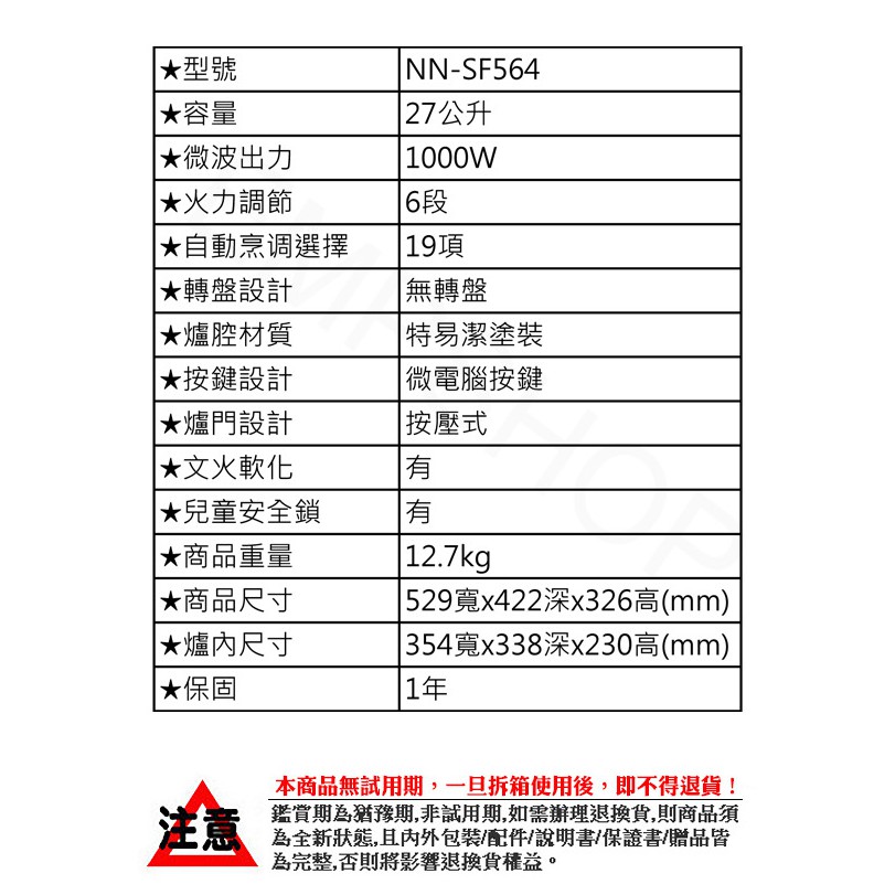 【國際牌Panasonic】27公升微電腦變頻微波爐 NN-SF564 平板式 按壓式 空間 清洗 免運【國際牌Panasonic】27公升微電腦變頻微波爐 NN-SF564 平板式 按壓式 空間 清洗 免運MicrowavesFashion數位家電