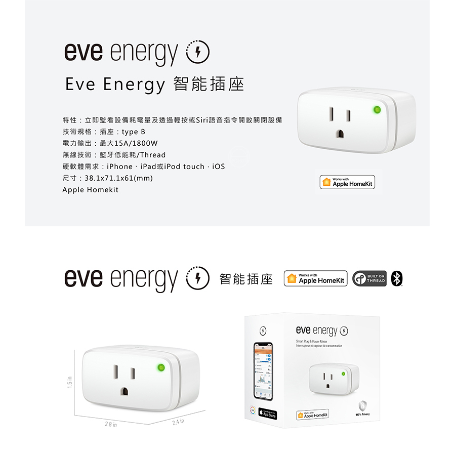 EVE Energy 智能插座 – thread/Matter 智能開關 遠端操控 Siri語音控制 APP監控新品|⏰限時促銷Electric Sockets & Extension CordsEve – HomeKit 官方旗艦店-智能生活館 Apple (台灣)