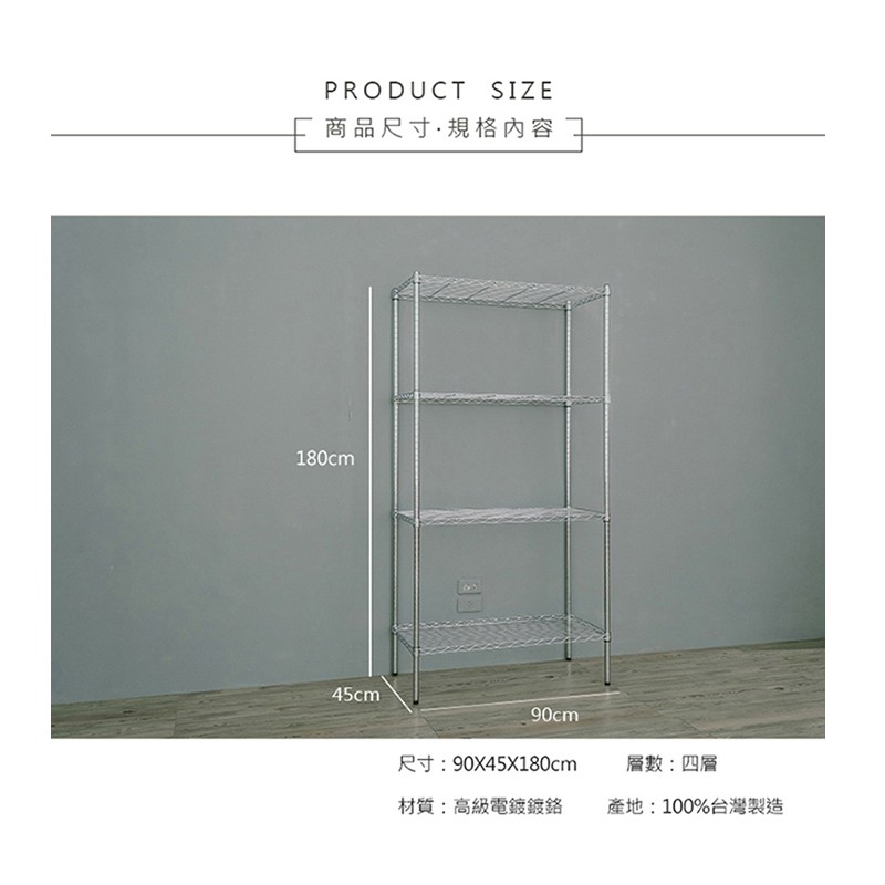 dayneeds 輕型四層置物架90x45x180公分(三色-鎖管)鐵力士架 收納架 廚房架 置物櫃電鍍鎖管四層架|黑色鎖管四層架|白色鎖管四層架Shelves & Racksdayneeds收納生活館
