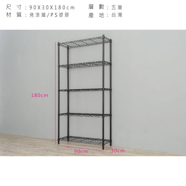 dayneeds 輕型五層置物架90x30x180公分(烤漆兩色)層架 鐵力士架 收納架 廚房架 置物櫃黑色|白色Shelves & Racksdayneeds收納生活館