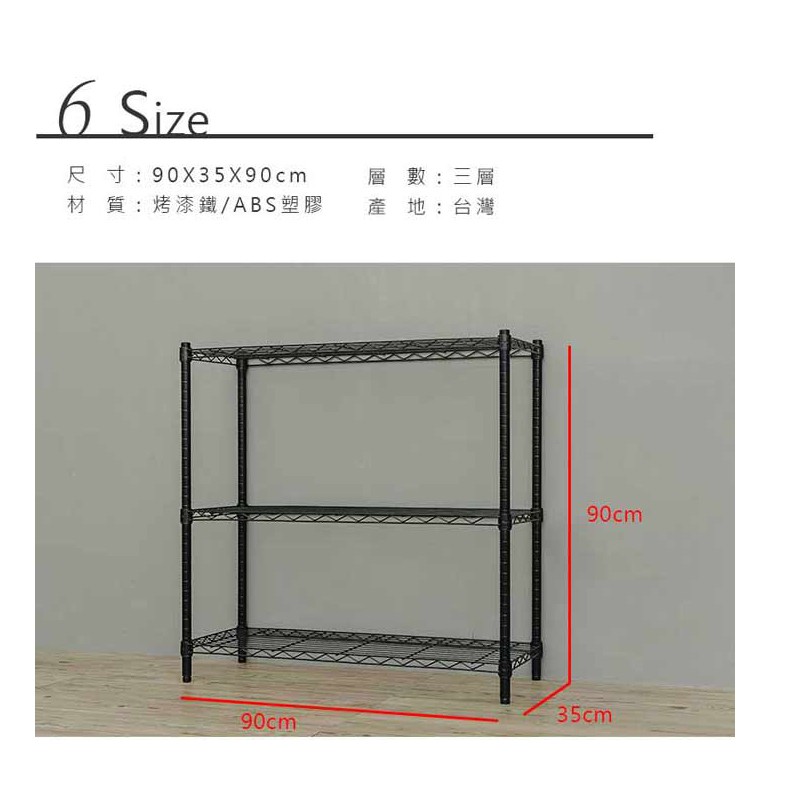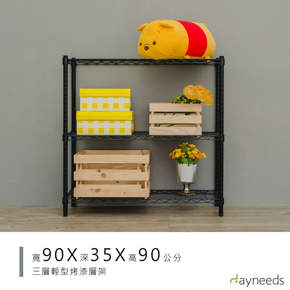 dayneeds 輕型三層置物架90x35x90公分(烤漆黑白)鐵力士架 收納架 廚房架 置物櫃黑色|白色Shelves & Racksdayneeds收納生活館