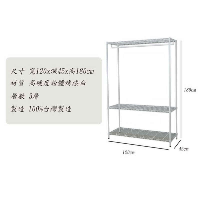 dayneeds 三層單桿波浪衣櫥架120x45x180公分(烤漆白)鐵力士架 收納架 廚房架 置物櫃衣櫥架(含深藍布套)|衣櫥架(含咖啡布套)|衣櫥架(含直條紋布套)|衣櫥架(含米色布套)|衣櫥架(含粉紅布套)|衣櫥架(無布套)Wardrobesdayneeds收納生活館