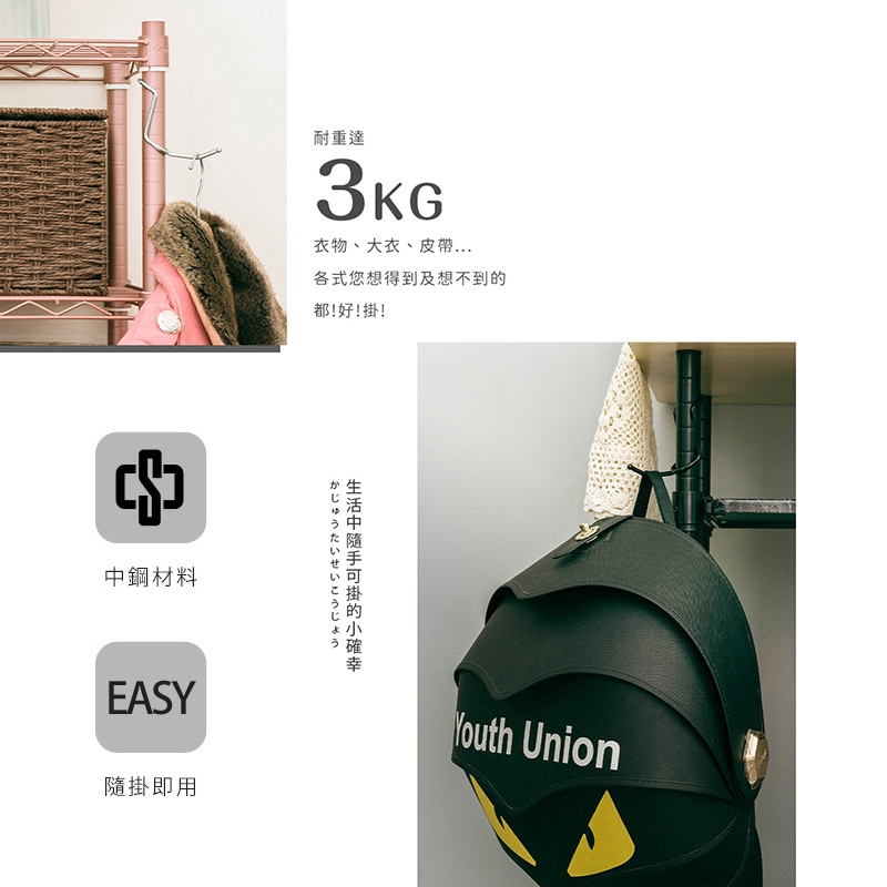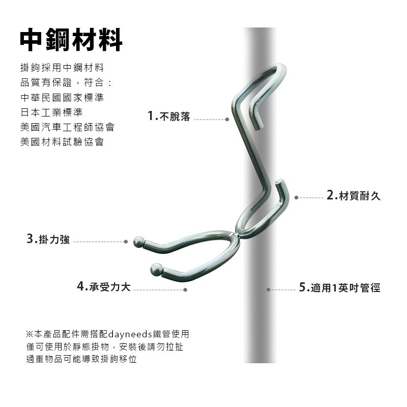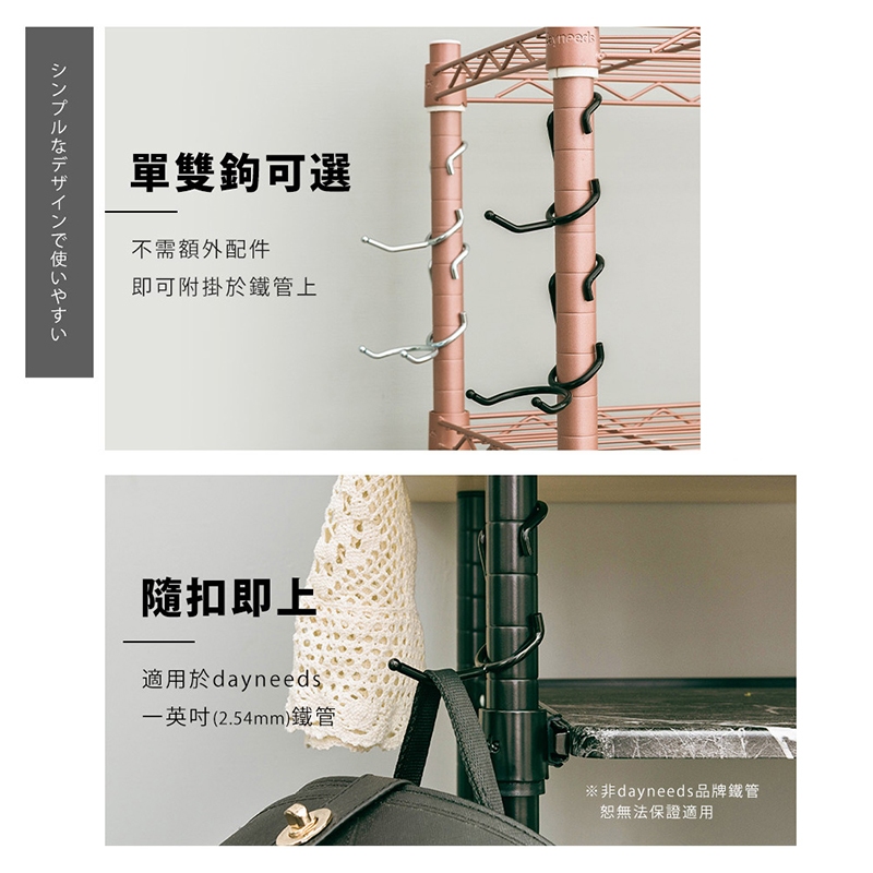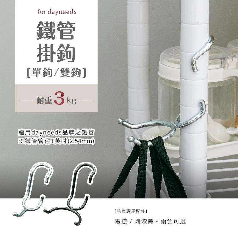 dayneeds 1英吋鐵管掛鉤〔單鉤/雙鉤〕兩色可選 衣帽掛 掛勾 鐵架掛勾 層架 卡扣式 層架配件單鉤-黑色|單鉤-銀色|雙鉤-黑色|雙鉤-銀色Hooksdayneeds收納生活館