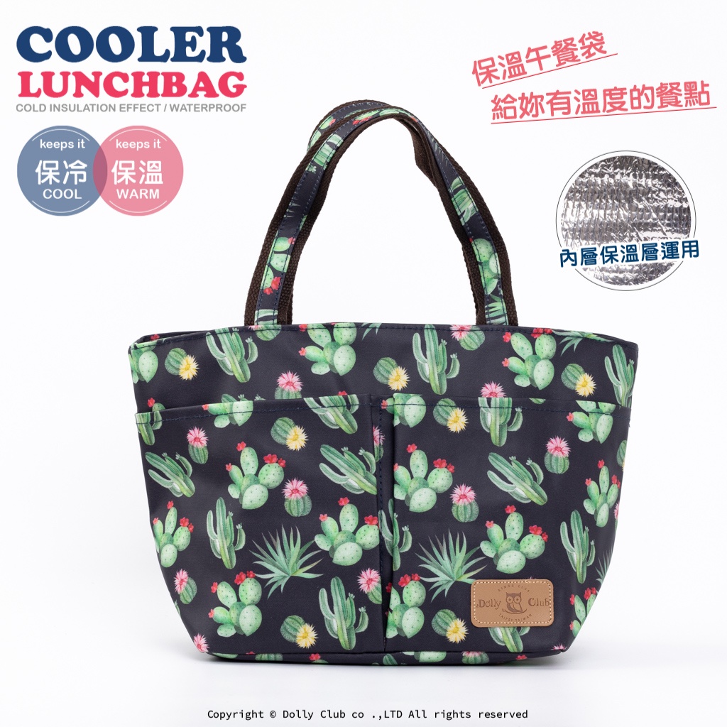 【Dolly Club】保溫午餐袋 保冷 便當袋 學生 送餐 野餐包-H10-仙人掌-黑-1118-防水布包1118|1114|H143W|1101Food StorageDolly Club 防水布包專門店