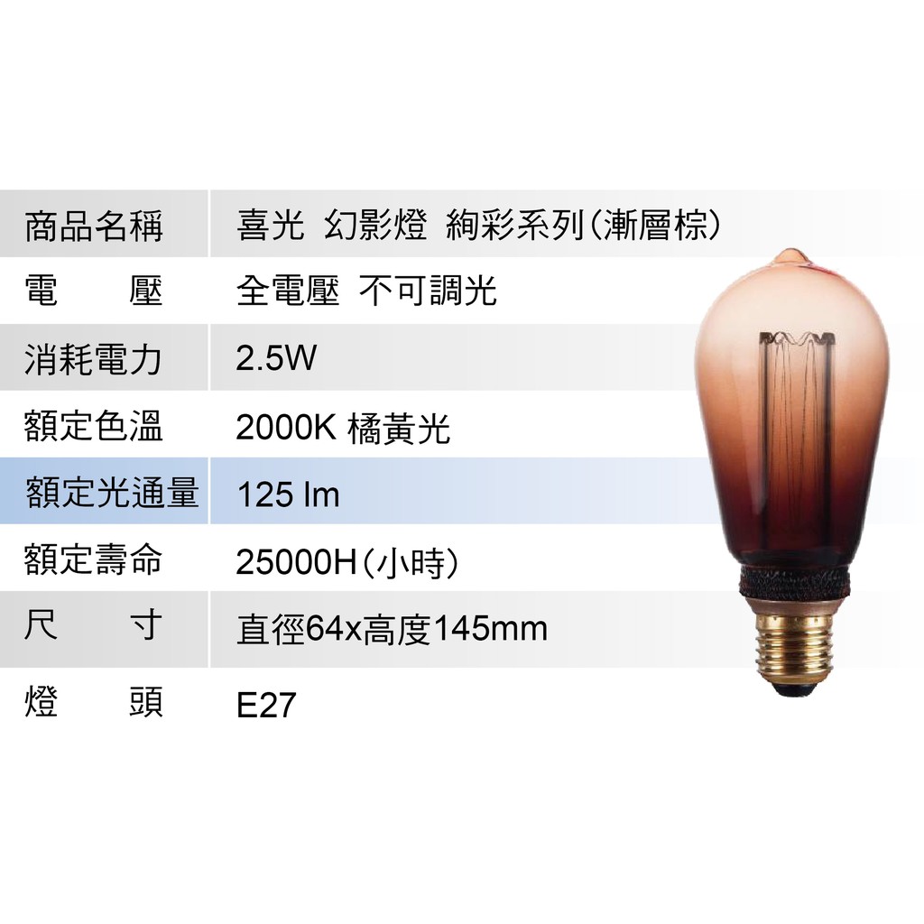 【喜光LED】LED E27/2.5W/幻影絢彩燈泡 ST64 達文西 (橘黃光)(非調光)【實體門市保固】粉色,經典|粉色,螺旋|粉色,條紋|漸層棕,經典|漸層棕,螺旋|藍色,螺旋|漸層棕,條紋|藍色,經典|藍色,條紋DREAM LIGHTS 築光燈飾