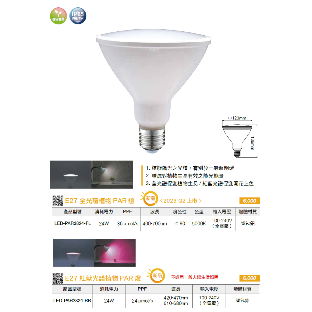 【舞光.LED】LED E27 植物燈泡 全光譜 紅藍光譜 戶外PRA燈【實體門市保固兩年】PAR3824 植物燈E27全光譜植物燈泡|E27紅藍光譜植物燈泡DREAM LIGHTS 築光燈飾