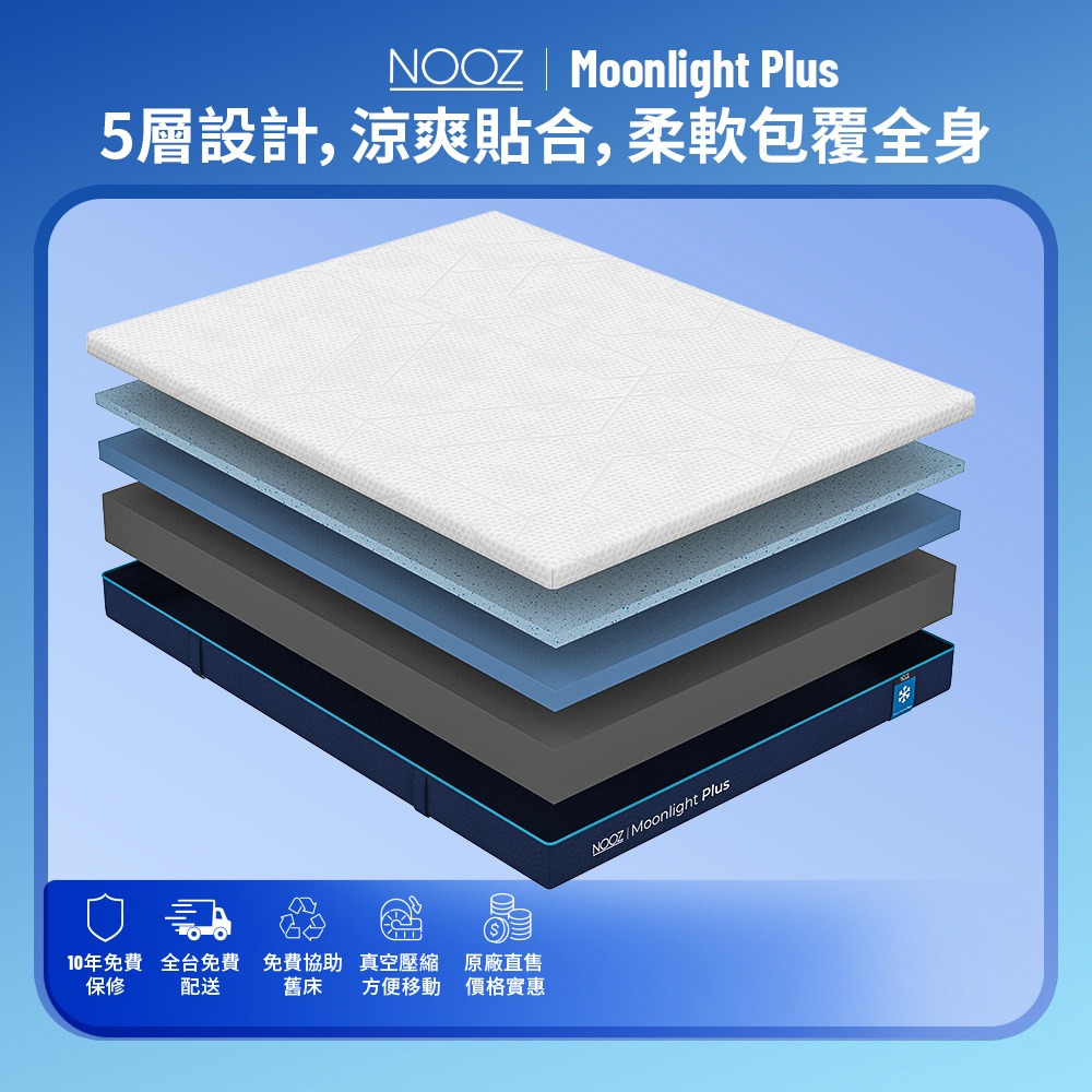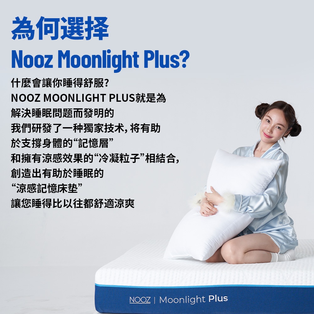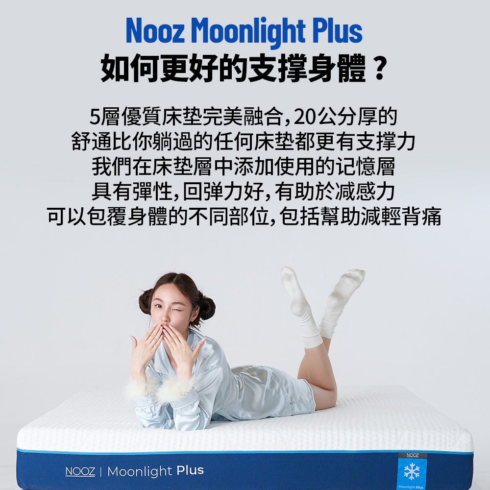 Nooz Moonlight Plus記憶床+枕【六角專利床罩】|20cm厚|兒童床墊/單人/雙人/雙人加大/雙人特大雙人特大6X7呎 少量現貨|標準單人3呎 8/22陸續出貨|單人加大3.5呎 8/22陸續出貨|標準雙人5呎 少量現貨|雙人加大6呎 少量現貨MattressesDreamlands精選名床|官方旗艦店Lunio / Nooz床墊