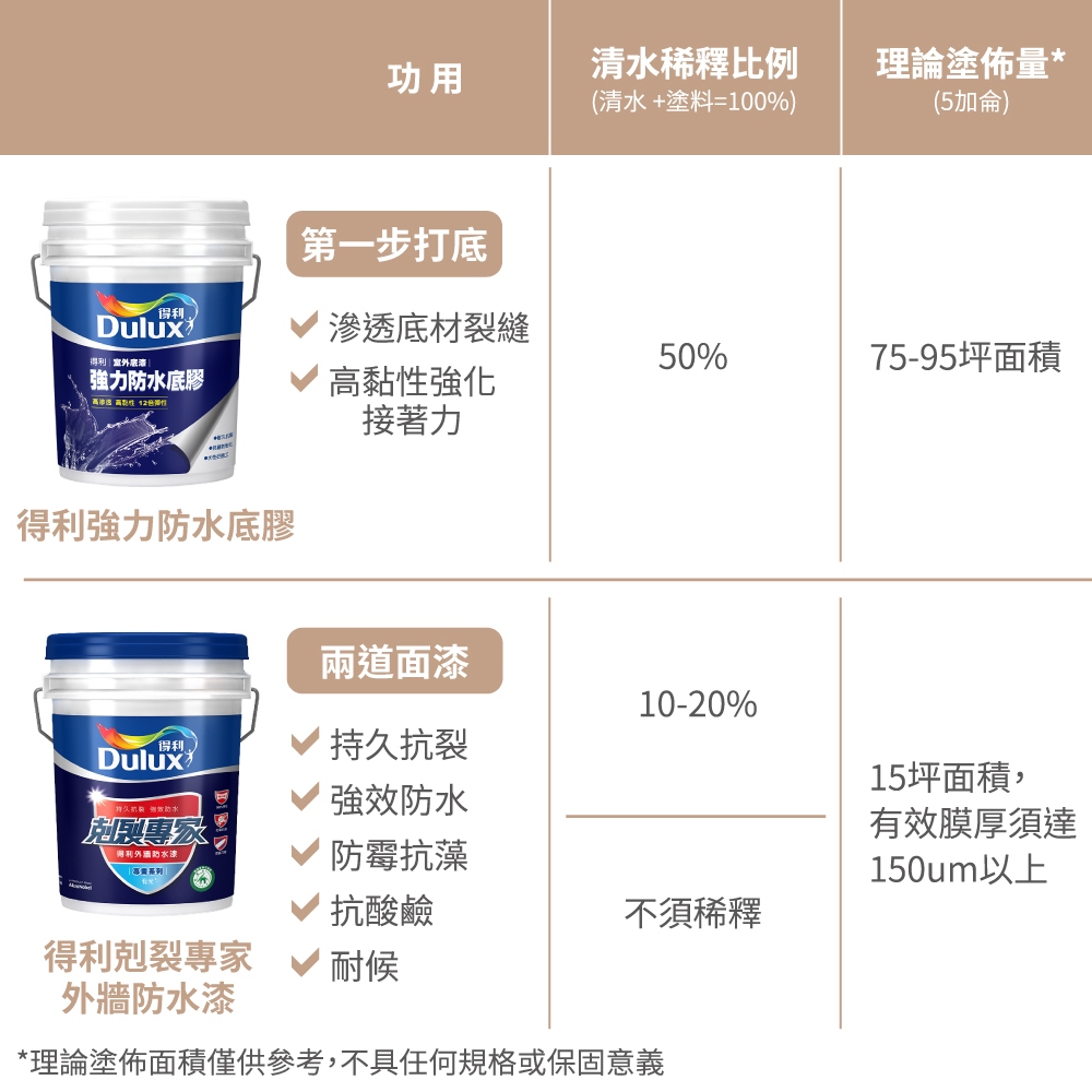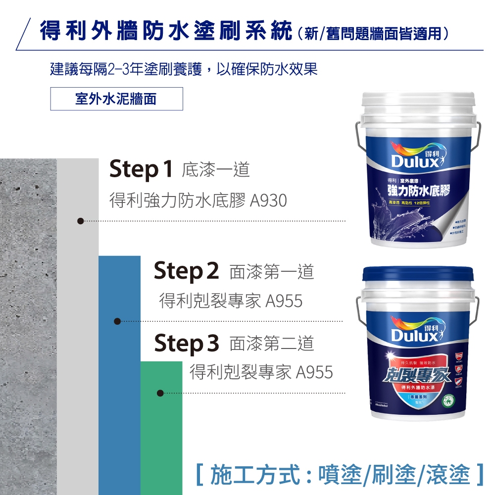 【得利官方旗艦店】A955 剋裂專家外牆防水漆 電腦調色(3公升裝)|客製化調色漆下單時請備註色號(客製色無退換)|.Wall Paints & CoatingsDulux得利塗料官方旗艦店