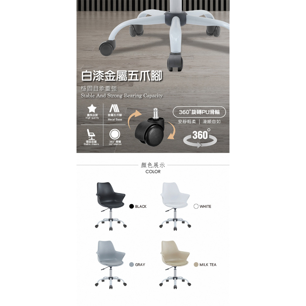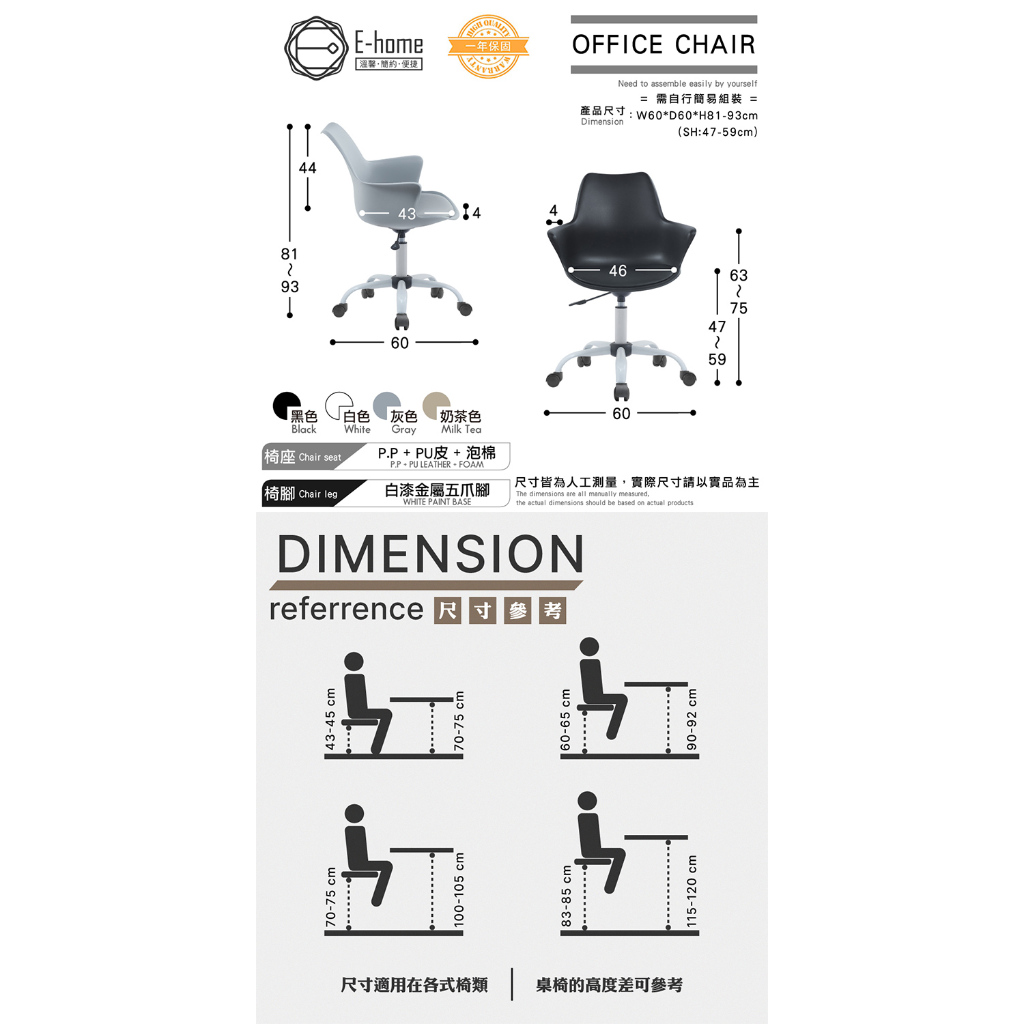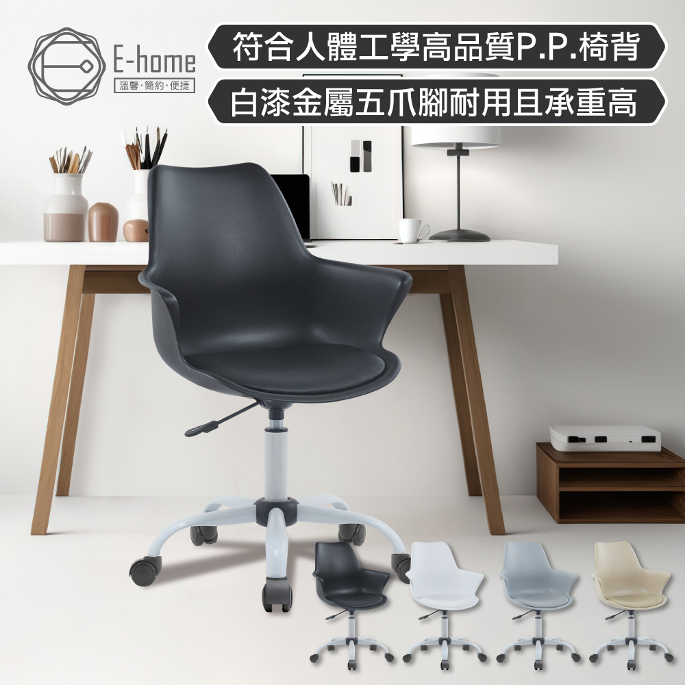 E-home 米洛簡約軟墊扶手白腳電腦椅 辦公椅 椅子 書桌椅 人體工學 美容椅黑色|白色|灰色|奶茶色Benches, Chairs & StoolsE-home 美規設計傢俱