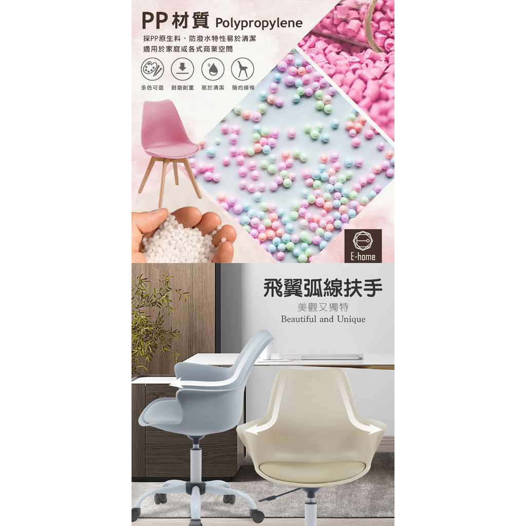 E-home 米洛簡約軟墊扶手白腳電腦椅 辦公椅 椅子 書桌椅 人體工學 美容椅