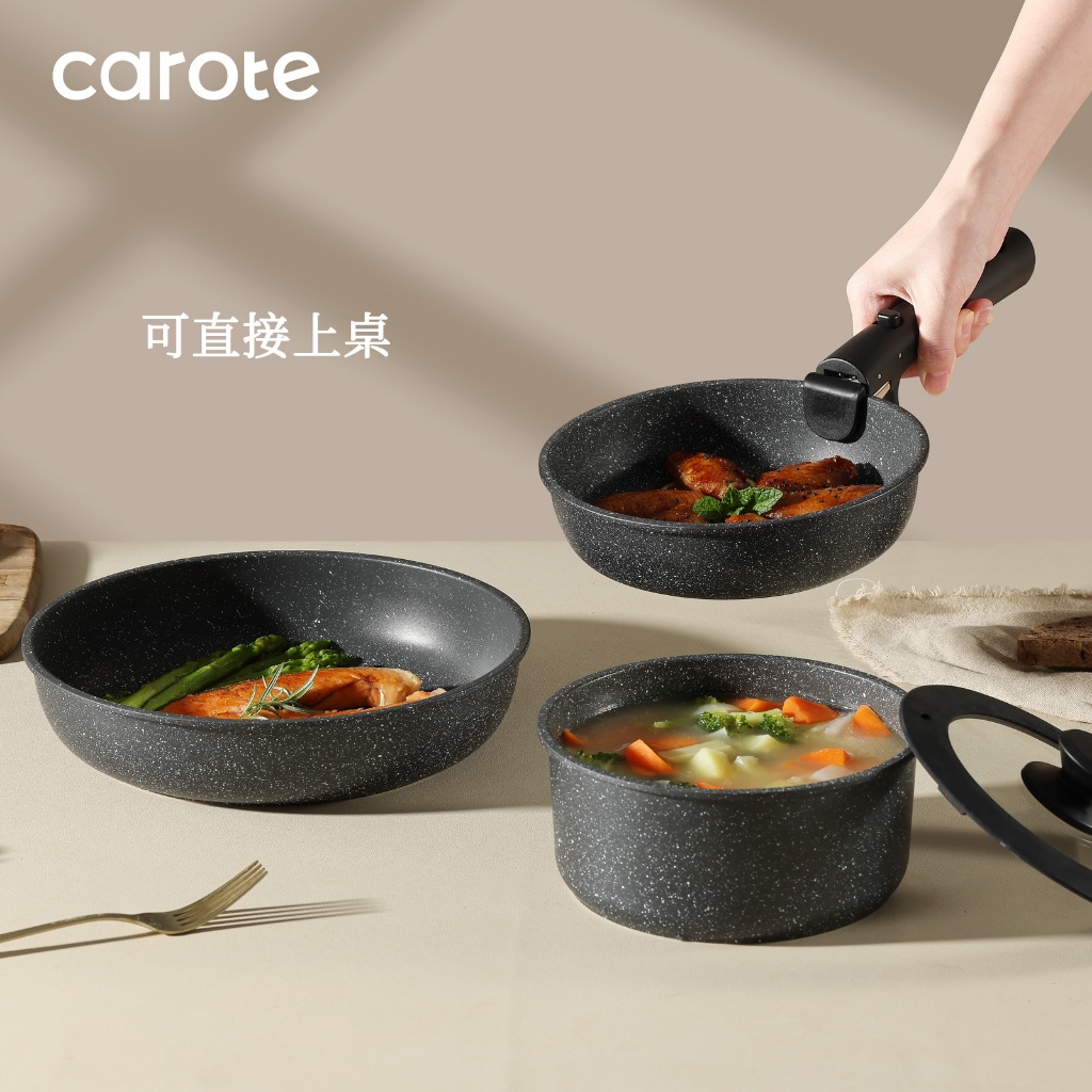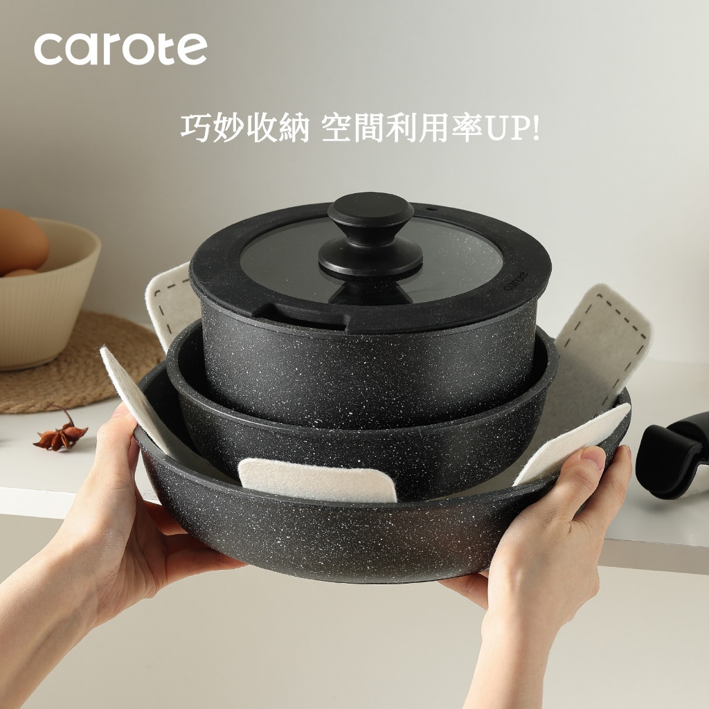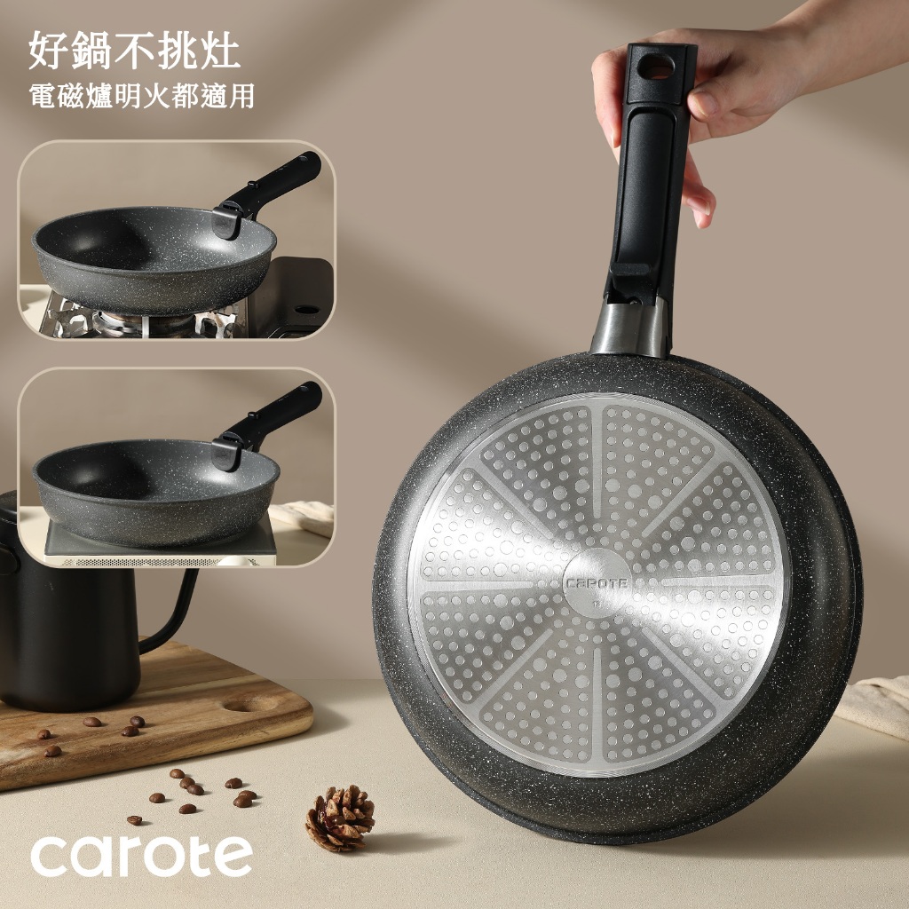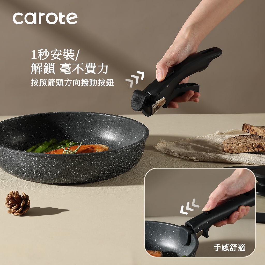 【CAROTE】EMP系列 麥飯石可拆卸不沾鍋7&12件組可拆式手柄/平底鍋/煎鍋/奶鍋/玉子燒煎鍋套裝電磁爐/ih爐3鍋7件組|6鍋12件組PansCAROTE