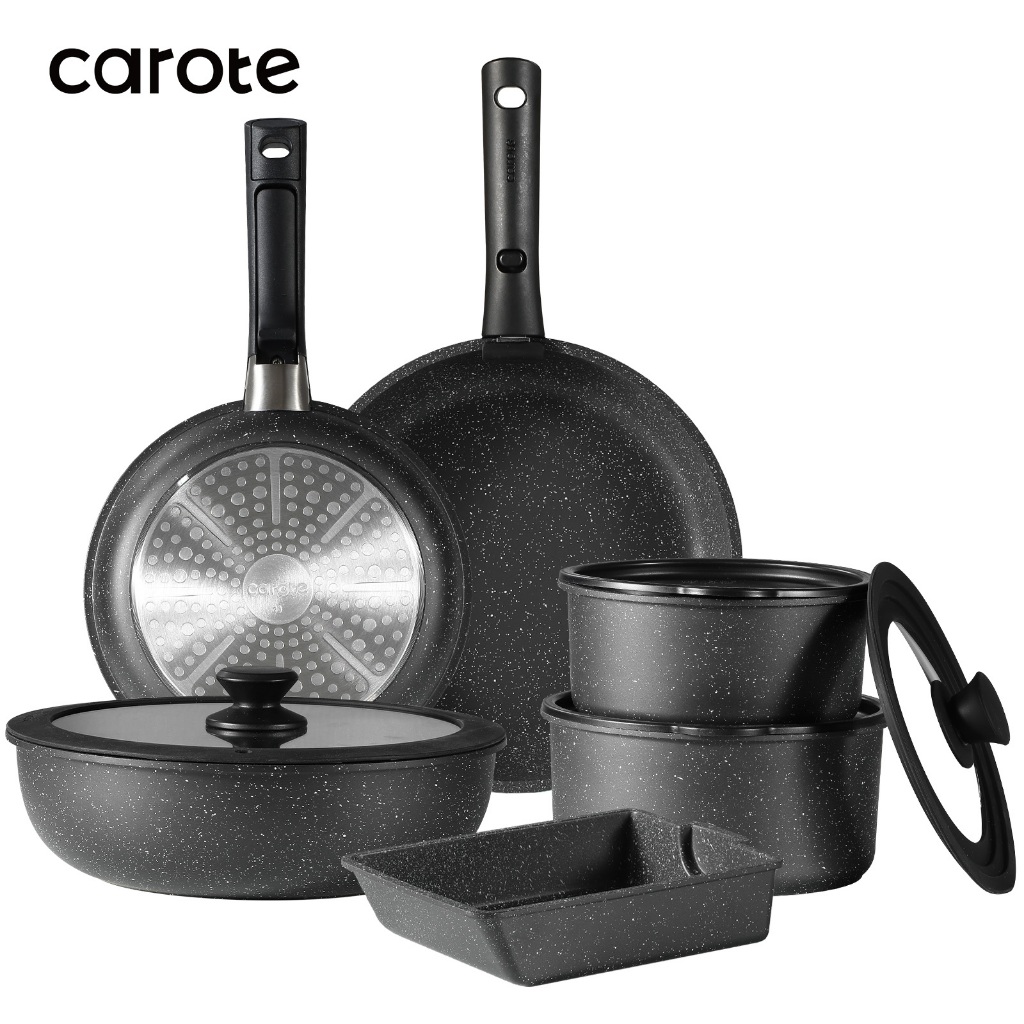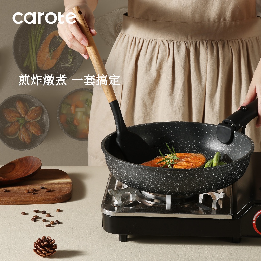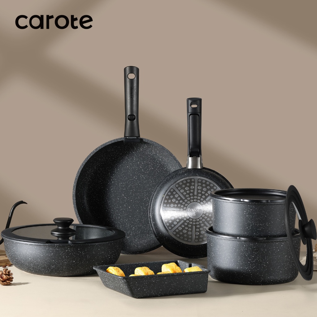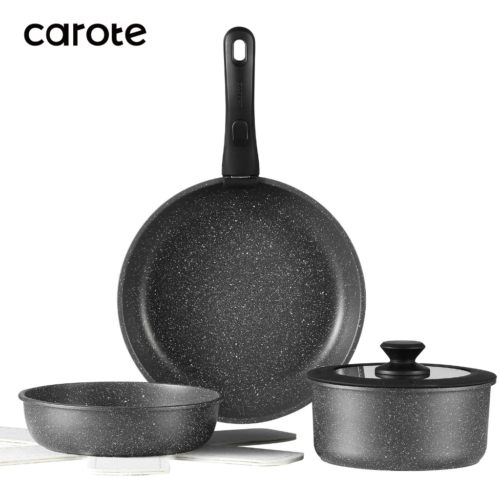 【CAROTE】EMP系列 麥飯石可拆卸不沾鍋7&12件組可拆式手柄/平底鍋/煎鍋/奶鍋/玉子燒煎鍋套裝電磁爐/ih爐3鍋7件組|6鍋12件組PansCAROTE