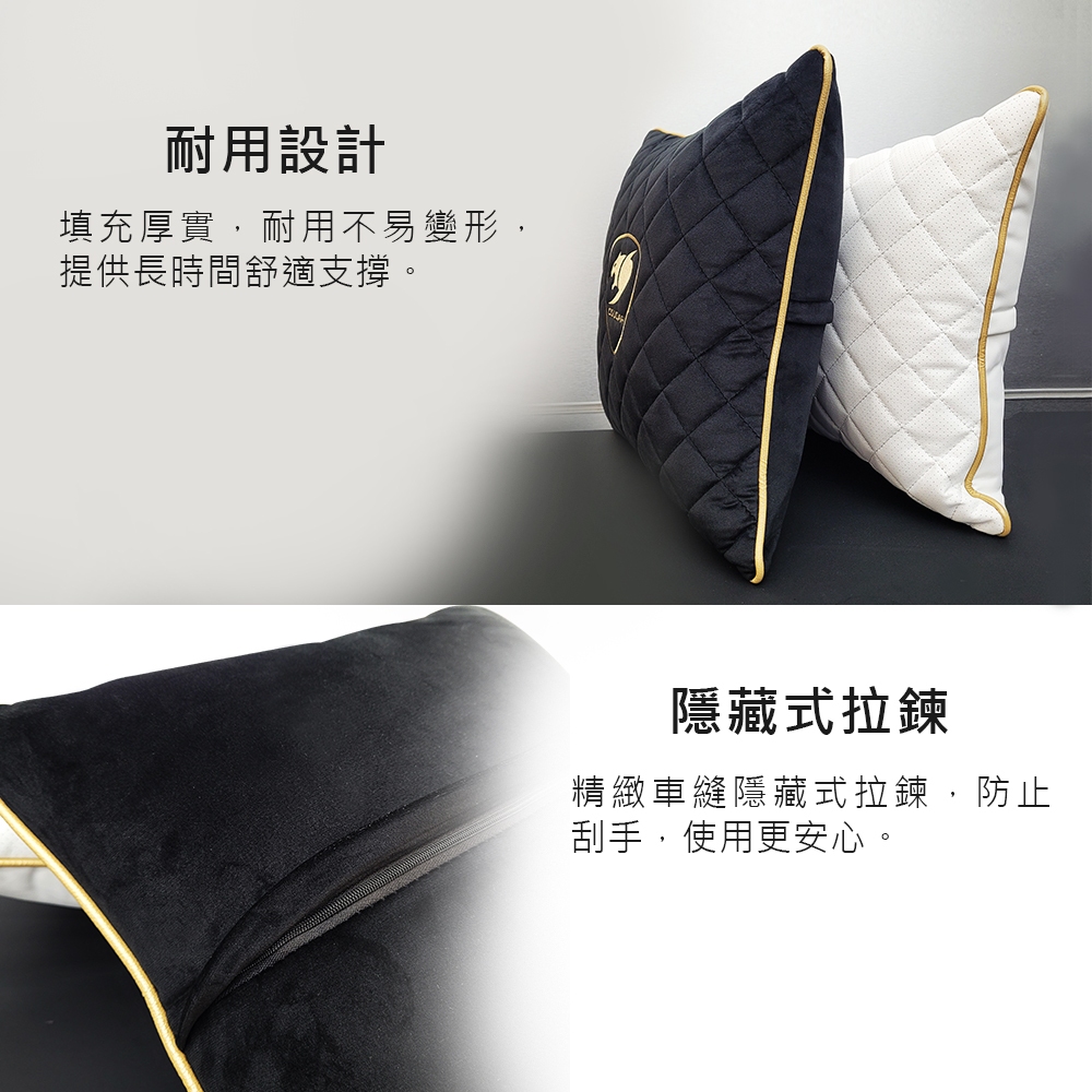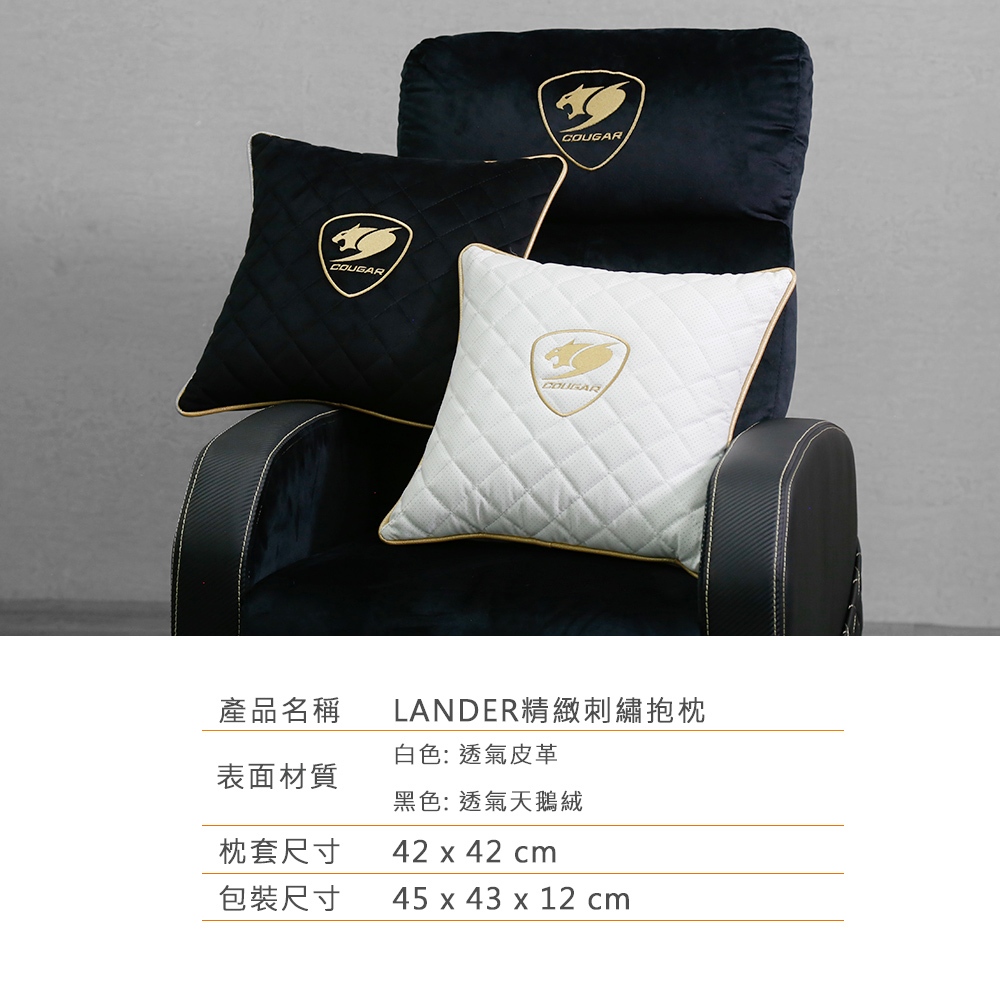 【COUGAR 美洲獅】LANDER 精美刺繡抱枕 賽車風格 經典菱格紋黑色|白色BolstersCOUGAR 美洲獅 品牌專賣店