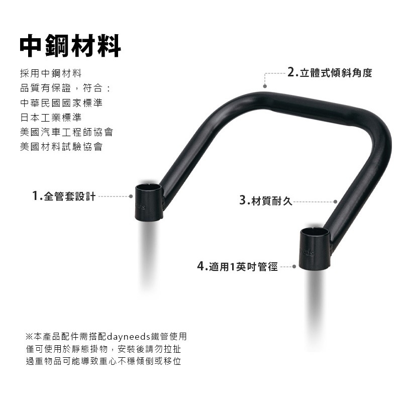 dayneeds 30cm寬-斜式置物架把手 兩色可選 /餐車/手把/搭掛/1吋管/配件/空姐餐車/美容車黑色|白色Shelves & Racksdayneeds收納生活館