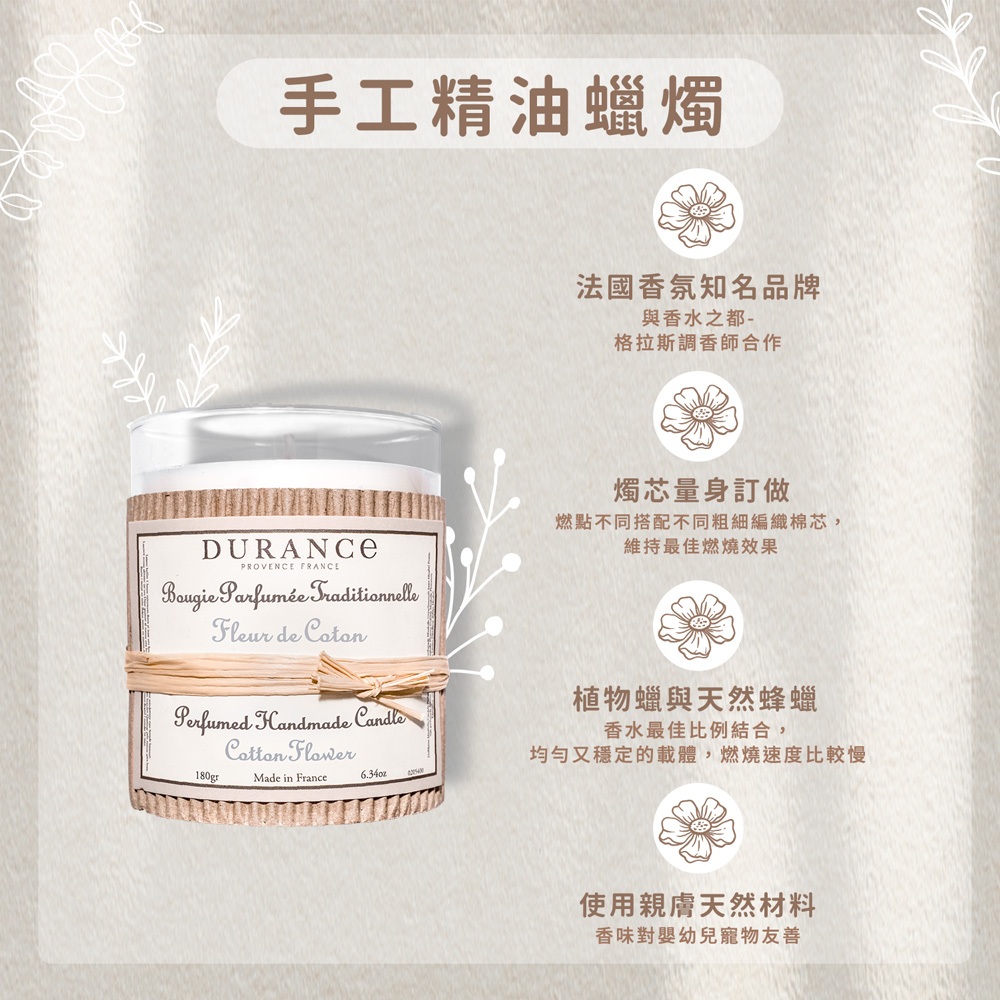 • DURANCE朵昂思 手工精油蠟燭(280g)(棉花田 橙花 山茶花)