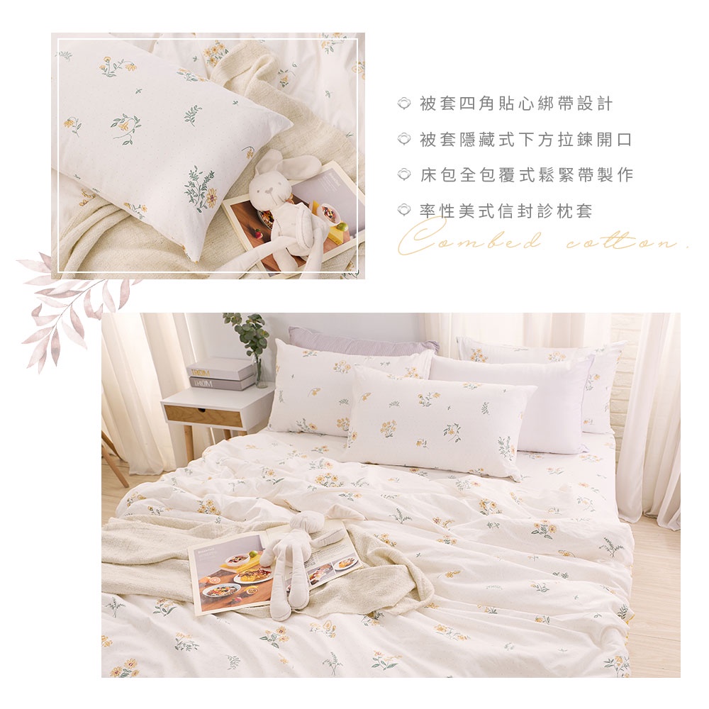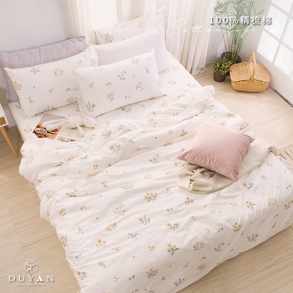 DUYAN竹漾 【文青日常系列】100%精梳棉/200織床包被套組-澄花檸香 台灣製雙人四件式舖棉兩用被床包組|雙人加大四件式鋪棉兩用被床包組|單人床包二件組|單人床包被套三件組|雙人床包三件組|雙人床包被套四件組|雙人加大床包三件組|雙人加大床包被套四件組Bedsheets, Pillowcases & Bolster CasesDUYAN竹漾寢飾│網路寢具第一品牌