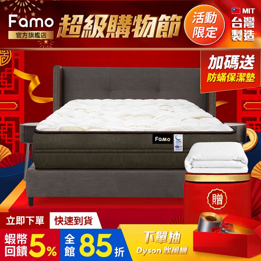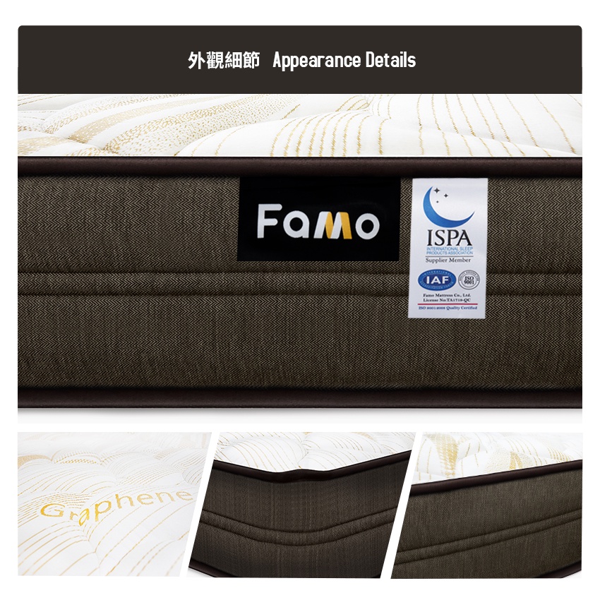 【 Famo 】偏硬超 Q 彈|Graphefil 石墨烯 乳膠 高回彈硬式獨立筒 床墊 配送免運【 蝦幣10倍送 】單人加大 3.5 尺 + 送 防蟎保潔墊|標準雙人 5 尺 + 送 防蟎保潔墊|雙人加大 6 尺 + 送 防蟎保潔墊MattressesFamo 法摩官方旗艦店