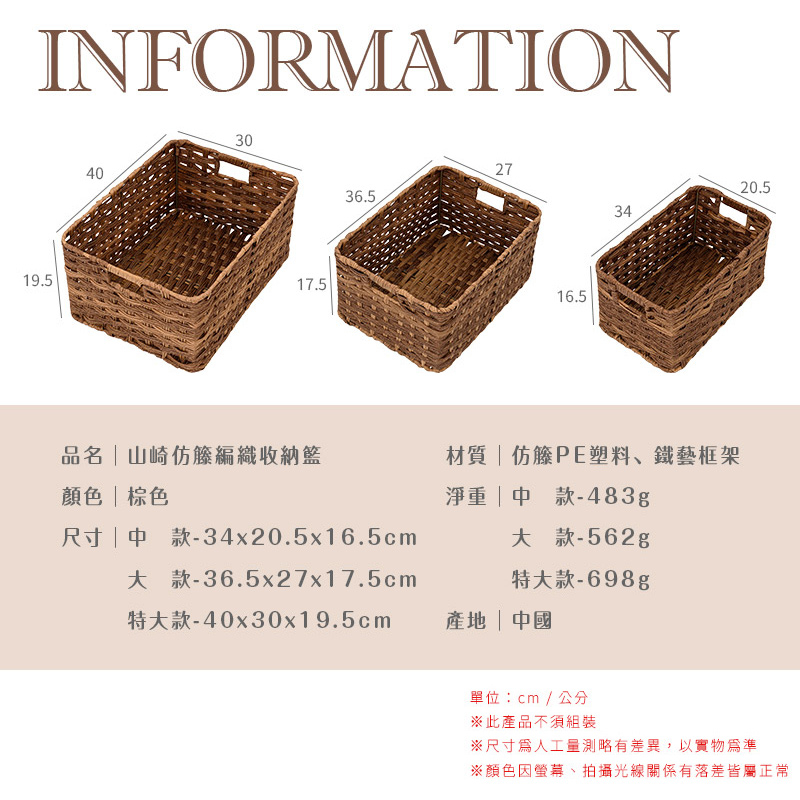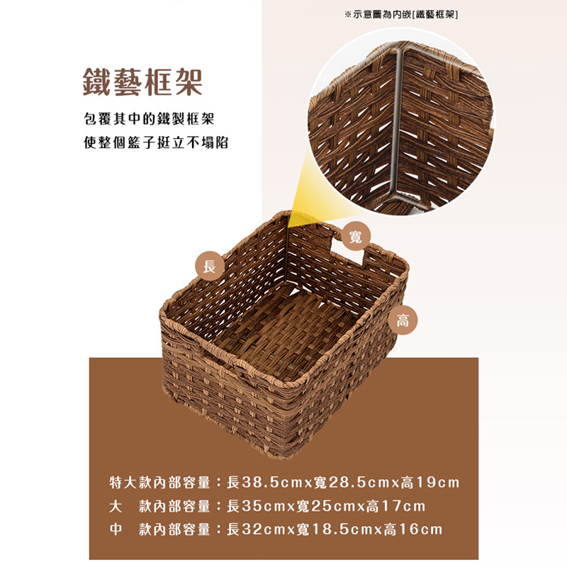 dayneeds 山崎仿籐編織收納籃 編織籃 收納籃 置物箱編織收納籃 收納盒 儲物 桌上收納籃 小物收納大款(1入)|特大款(1入)|中+大+特大(3入組)|中款(1入)Storage Boxes, Bags & Basketsdayneeds收納生活館