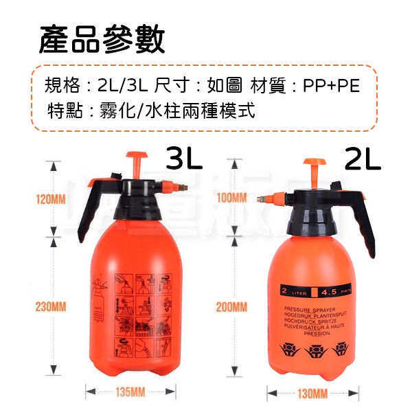 高壓噴壺 澆花噴壺 氣壓噴瓶 2L/3L 噴霧器 灑水壺 噴水壺 加壓噴瓶 噴瓶