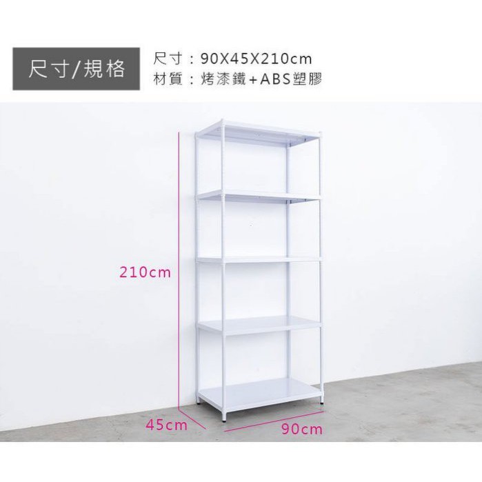 dayneeds 高強度鐵板五層收納層架90x45x210公分(烤漆)單層荷重200kg無洞鐵板層架 底部補強白色|黑色Cupboards & Cabinetsdayneeds收納生活館