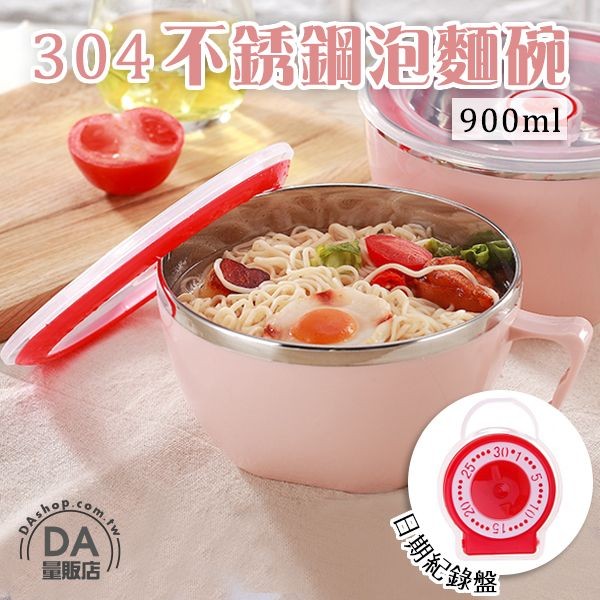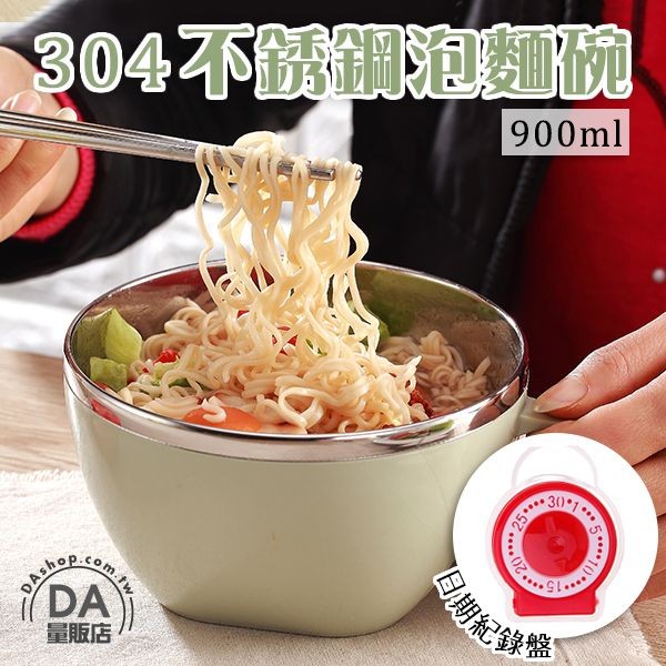韓式泡麵碗 304不鏽鋼 900ml 泡麵碗 送小麥環保餐具組 保鮮碗 草本風 大容量 雙層隔熱 密封 方便麵碗 便當盒粉+小麥餐具|藍+小麥餐具|綠+小麥餐具Food StorageDA量販店