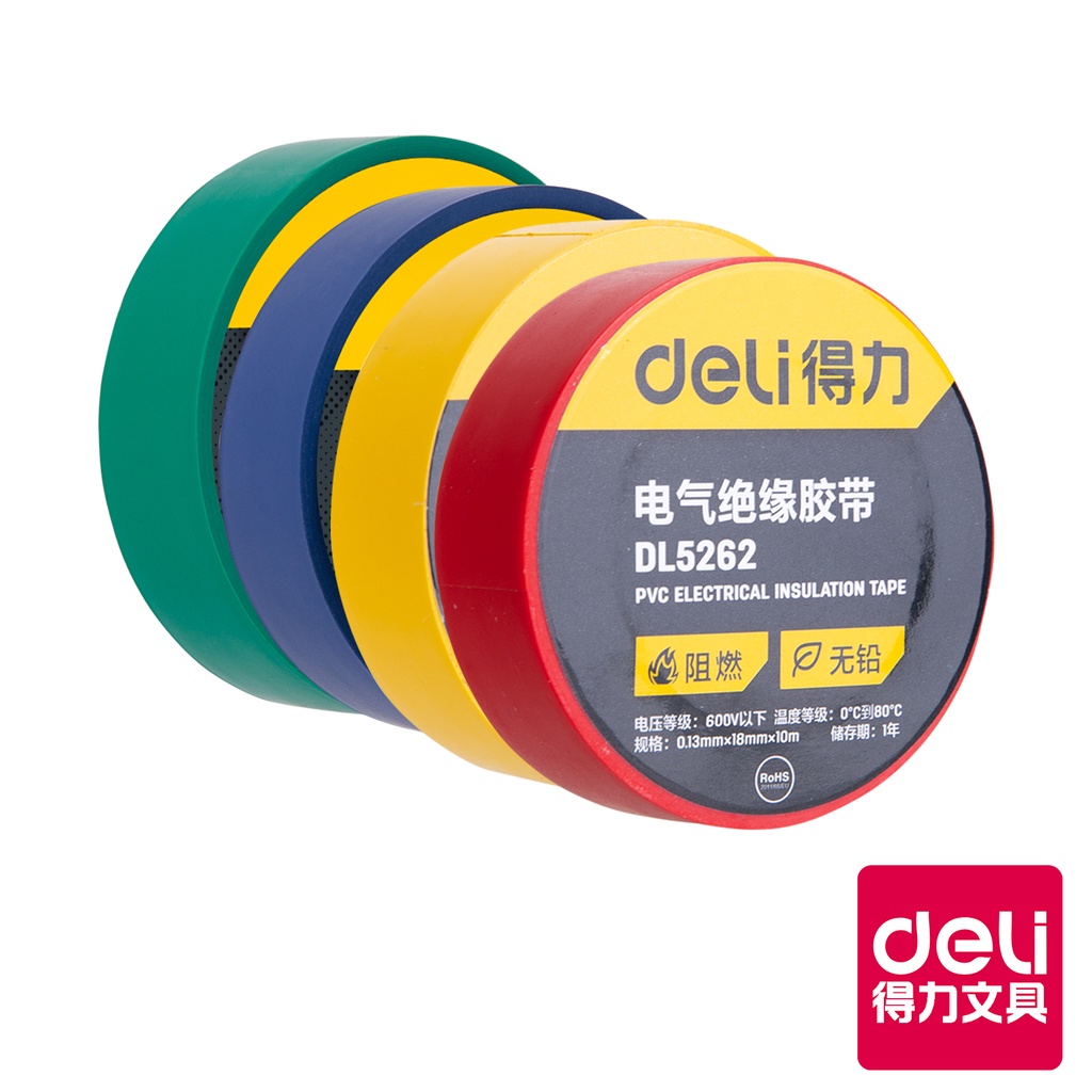 【Deli得力】電氣膠帶 DL5262 DL5263 DL5265 DL5266 紅 黃 藍 綠 18mmx10m 絕緣黃|藍Industrial Adhesives & TapesDeli 得力 旗艦店|台灣總代理