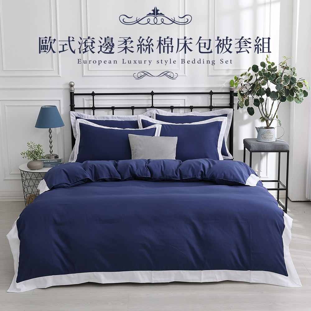 【岱思夢】歐式滾邊柔絲棉 床包被套組/兩用被床包組 單人/雙人/加大 台灣製造 地中海藍單人3.5尺-被套床包三件組|雙人5尺-被套床包四件組|加大6尺-被套床包四件組|單人3.5尺-兩用被床包三件組|雙人5尺-兩用被床包四件組|加大6尺-兩用被床包四件組Bedsheets, Pillowcases & Bolster CasesDESMOND岱思夢寢具【官方旗艦店】