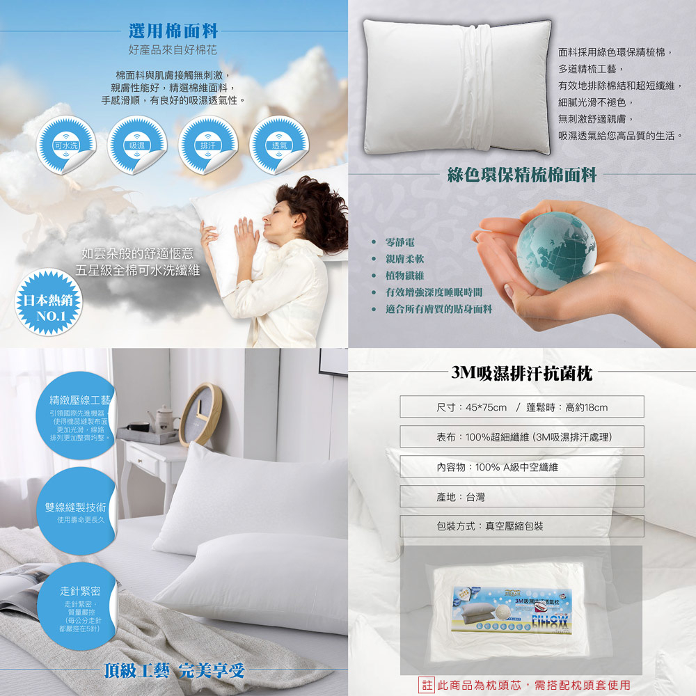 【岱思夢】3M吸濕排汗抗菌枕 MIT 台灣製造 水洗枕 枕頭 飯店枕 彈力支撐 民宿愛用 柔軟 透氣 日本熱銷[現貨]3M吸濕排汗抗菌水洗枕1入|3M吸濕排汗抗菌水洗枕2入PillowsDESMOND岱思夢寢具【官方旗艦店】
