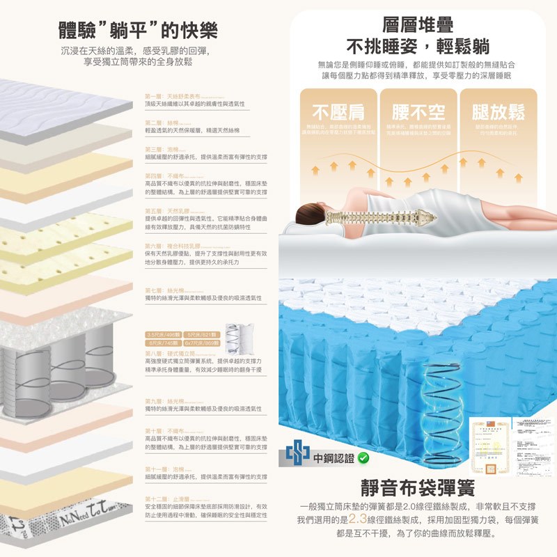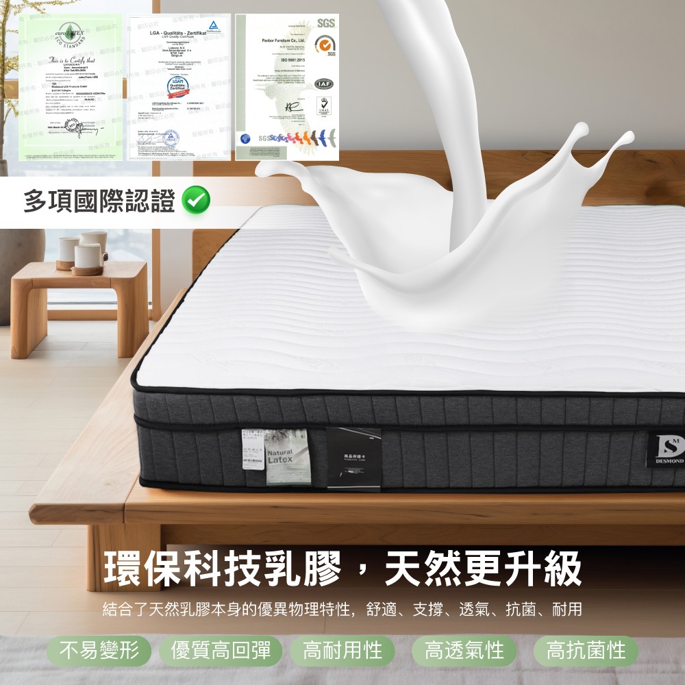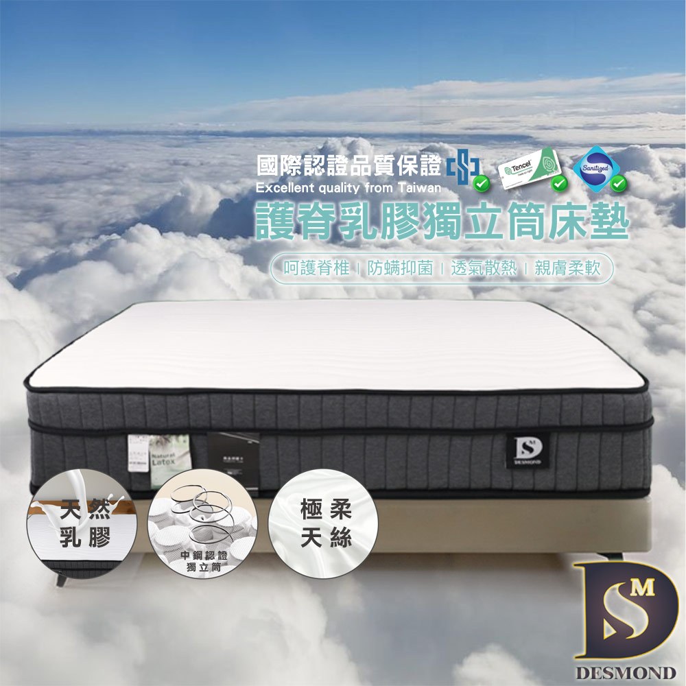【岱思夢】護脊乳膠獨立筒床墊 台灣製造 六星飯店御用 12層機能設計 天絲表布 配送免運費 [相關規定請詳看內文說明]單人3.5尺(107 x 188)|雙人5尺(152 x 188)|加大6尺(182 x 188)|特大7尺(182 x 212)MattressesDESMOND岱思夢寢具【官方旗艦店】