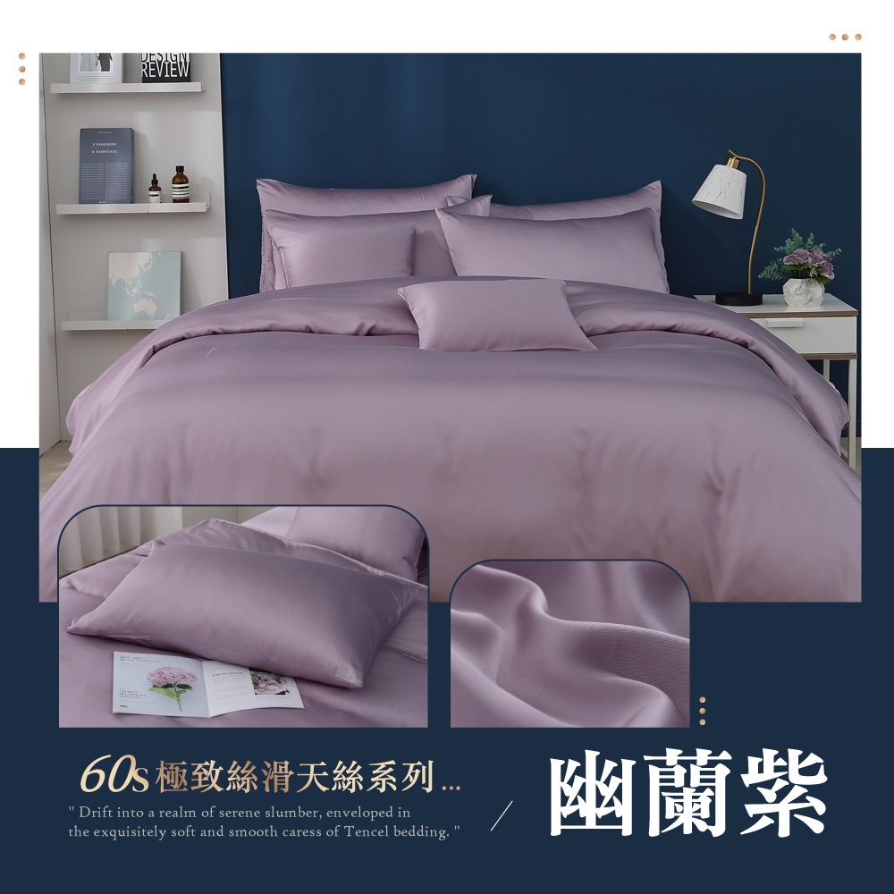 【岱思夢】頂級60支天絲床包組 幽蘭紫 單人 雙人 加大 特大 TENCEL 100%天絲 萊賽爾 兩用被床包 素色單人3.5尺【床包1+枕套1】|雙人5尺【床包1+枕套2】|加大6尺【床包1+枕套2】|特大7尺【床包1+枕套2】|單人3.5尺【床包1+枕套1+兩用被1】|雙人5尺【床包1+枕套2+兩用被1】|加大6尺【床包1+枕套2+兩用被1】|特大7尺【床包1+枕套2+兩用被1】Bedsheets, Pillowcases & Bolster CasesDESMOND岱思夢寢具【官方旗艦店】