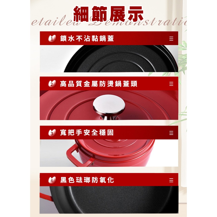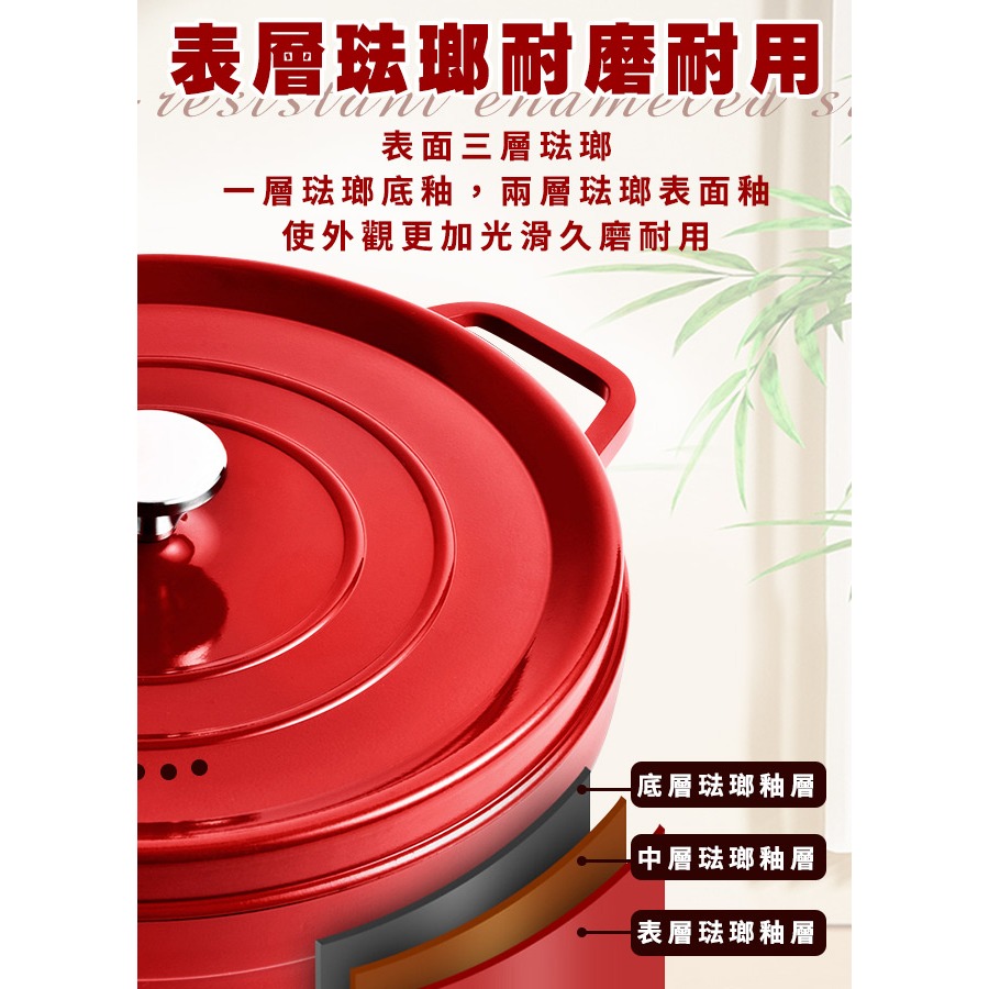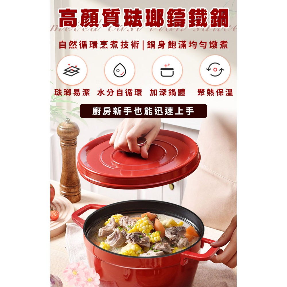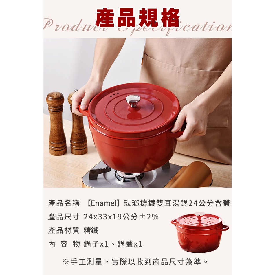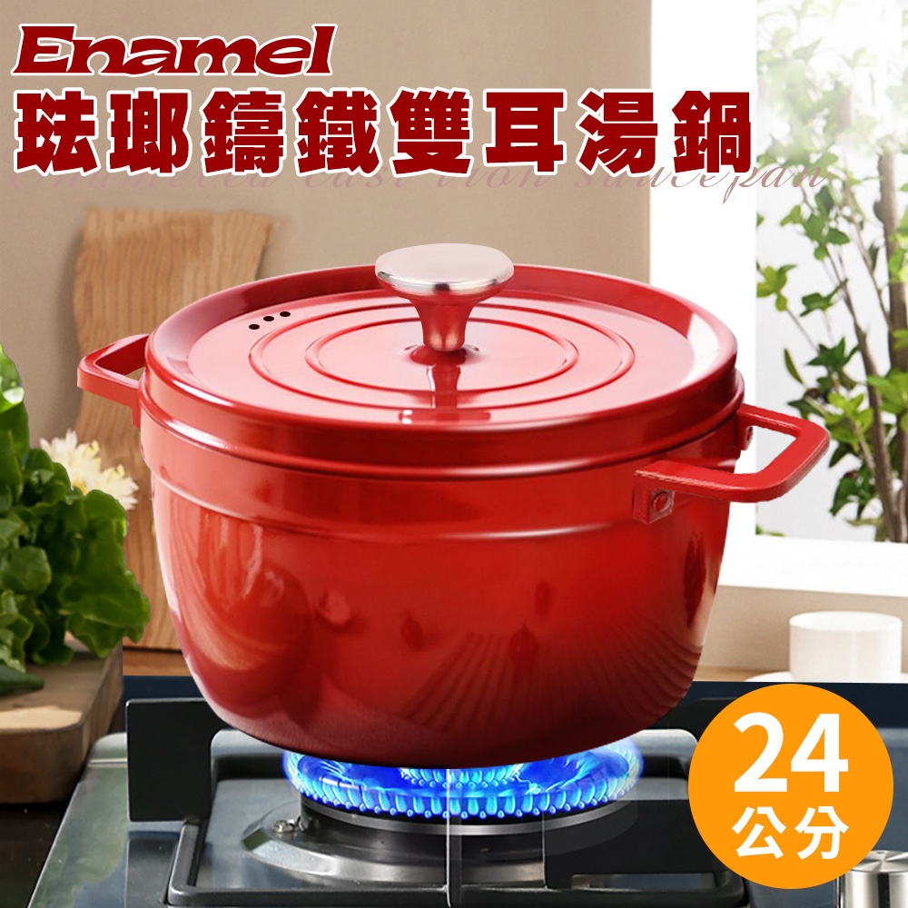 【Enamel】琺瑯鑄鐵雙耳湯鍋24公分含蓋 琺瑯鍋 鑄鐵鍋 湯鍋 保溫鍋 鍋子 大容量鍋