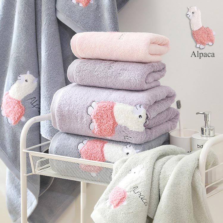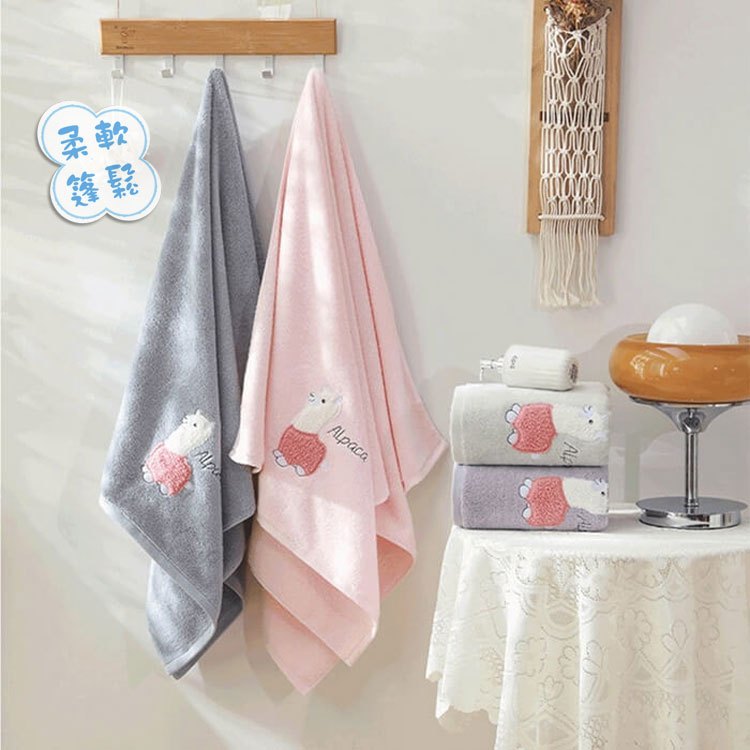 可愛羊駝 無撚紗大浴巾 草泥馬 純棉 柔軟蓬鬆 大浴巾 Alpaca Towel【DK大王】灰色/1條|紫色/1條|綠色/1條|粉色/1條Towels & BathrobesDK大王旗艦店