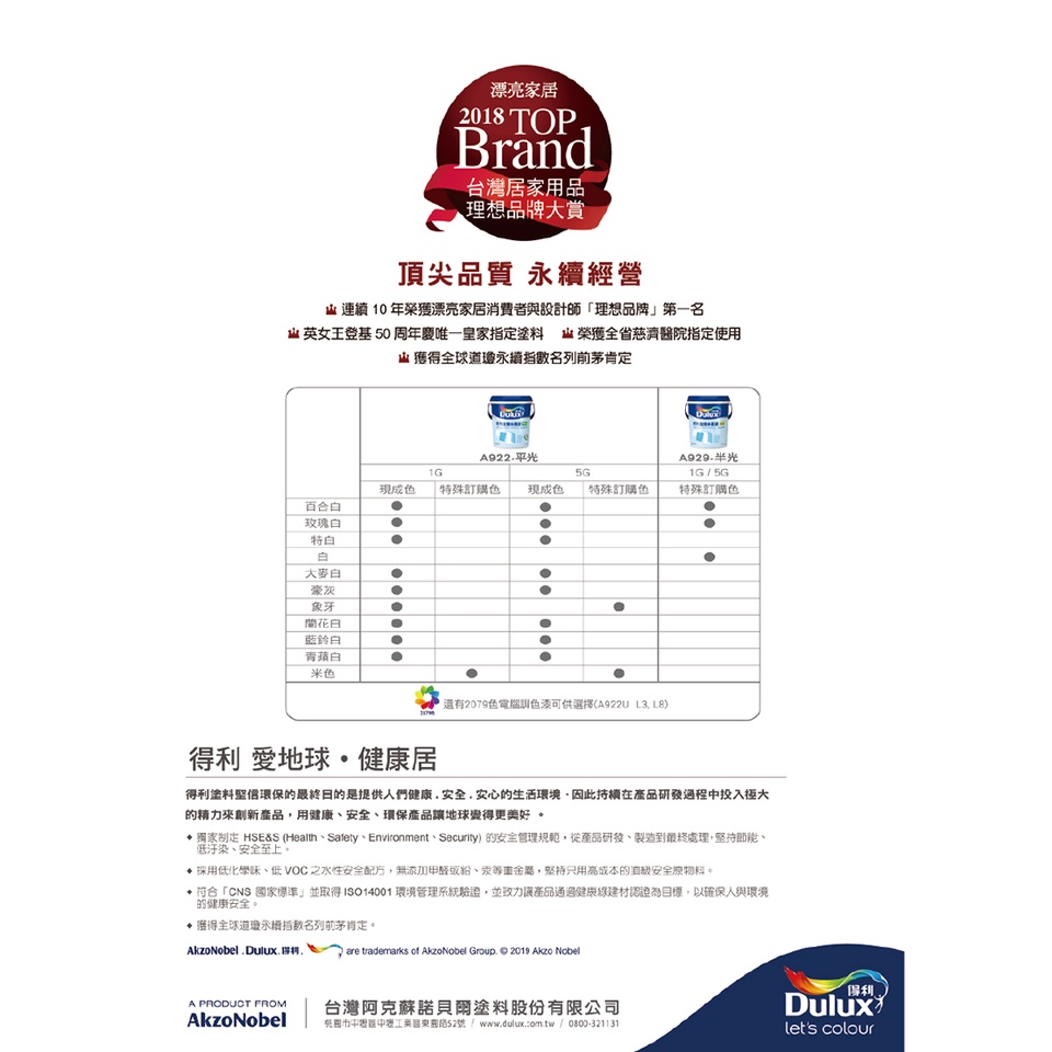 【得利官方旗艦店】A922 全效水泥漆 民宿風精選色系-來佇 電腦調色(3公升裝)|客製化調色漆18RB 08/286(客製色無退換)|30BB 05/022(客製色無退換)Wall Paints & CoatingsDulux得利塗料官方旗艦店