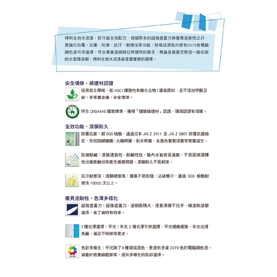 【得利官方旗艦店】A922 全效水泥漆 民宿風精選色系-來佇 電腦調色(3公升裝)|客製化調色漆