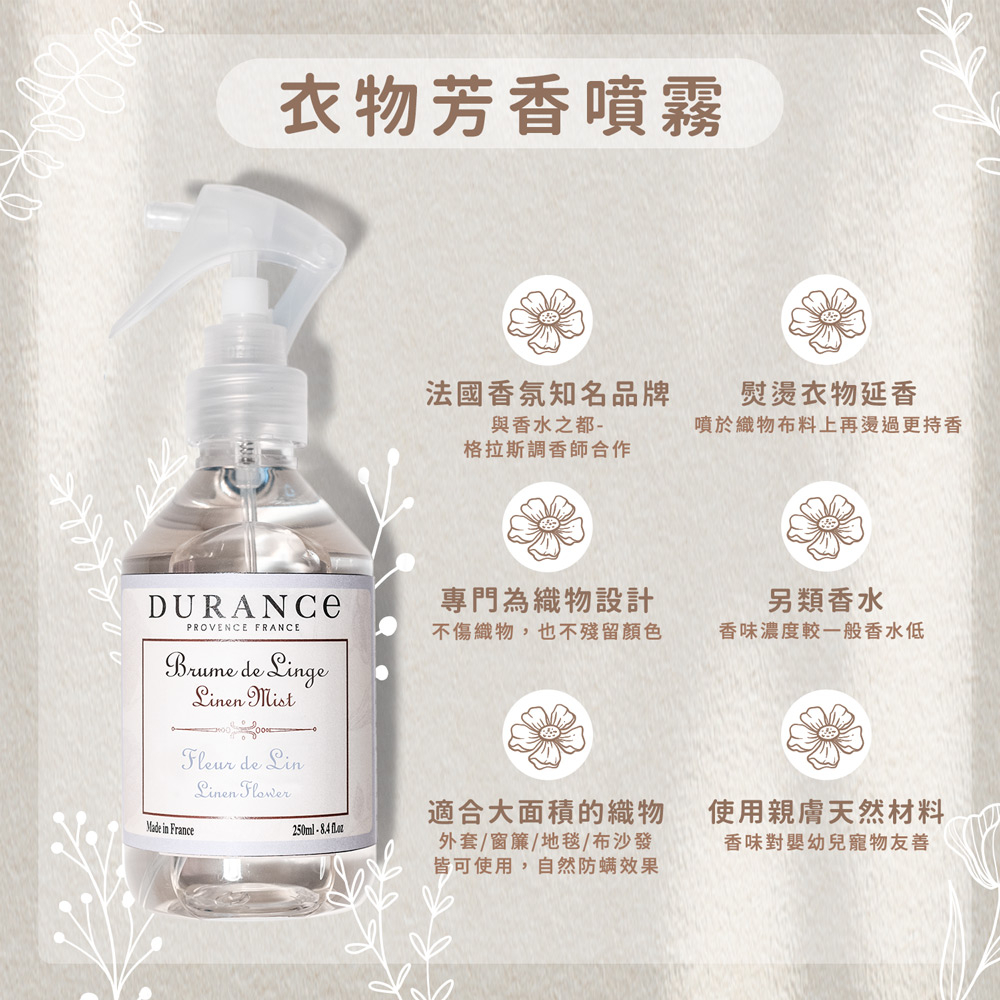 DURANCE朵昂思 衣物芳香噴霧(250ml)-寧靜夜晚 薰衣草 馬鞭草 橙花 棉花田 清新亞麻 亞麻花亞麻花|清新亞麻|🔥TOP熱銷🔥棉花田|寧靜夜晚|🔥TOP熱銷🔥薰衣草|馬鞭草|🔥TOP熱銷🔥橙花|橙花-Tester|馬鞭草-Tester|薰衣草-Tester|清新亞麻-Tester|寧靜夜晚-Tester|亞麻花-Tester|棉花田-TesterLaundry CareDurance朵昂思官方旗艦店