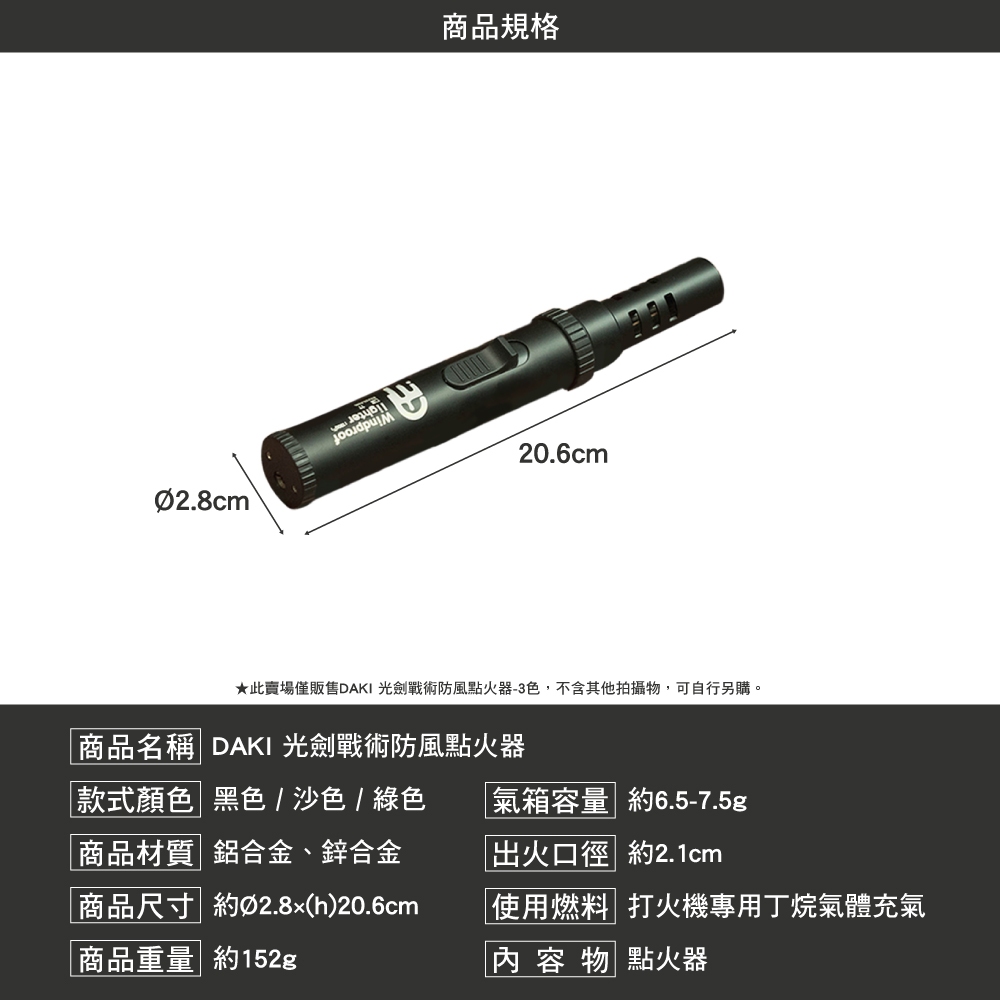 DAKI 光劍戰術防風點火器 點火器 打火機 噴槍 露營光劍戰術防風點火器-黑|光劍戰術防風點火器-沙|光劍戰術防風點火器-綠Lighters, Matches & Fire StartersCAMP WORLD 逐露 天下 露營 登山 生活 商城旗艦店