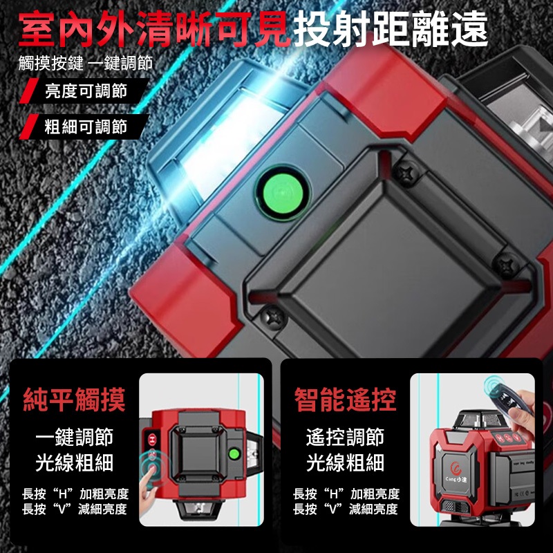 【Cang小達】水平儀 12/16線觸控式戶外高精雷射水平儀 自動調平【LD綠光/藍光】陽光下可見裝修可打斜線 品牌保固超亮高精度頂配綠光12線(調光/爆閃)|超亮高精度頂配藍光12線(調光/爆閃)|超亮高精度頂配綠光16線(調光/爆閃)|超亮高精度頂配藍光16線(調光/爆閃)ToolsCang小達丨品牌旗艦店