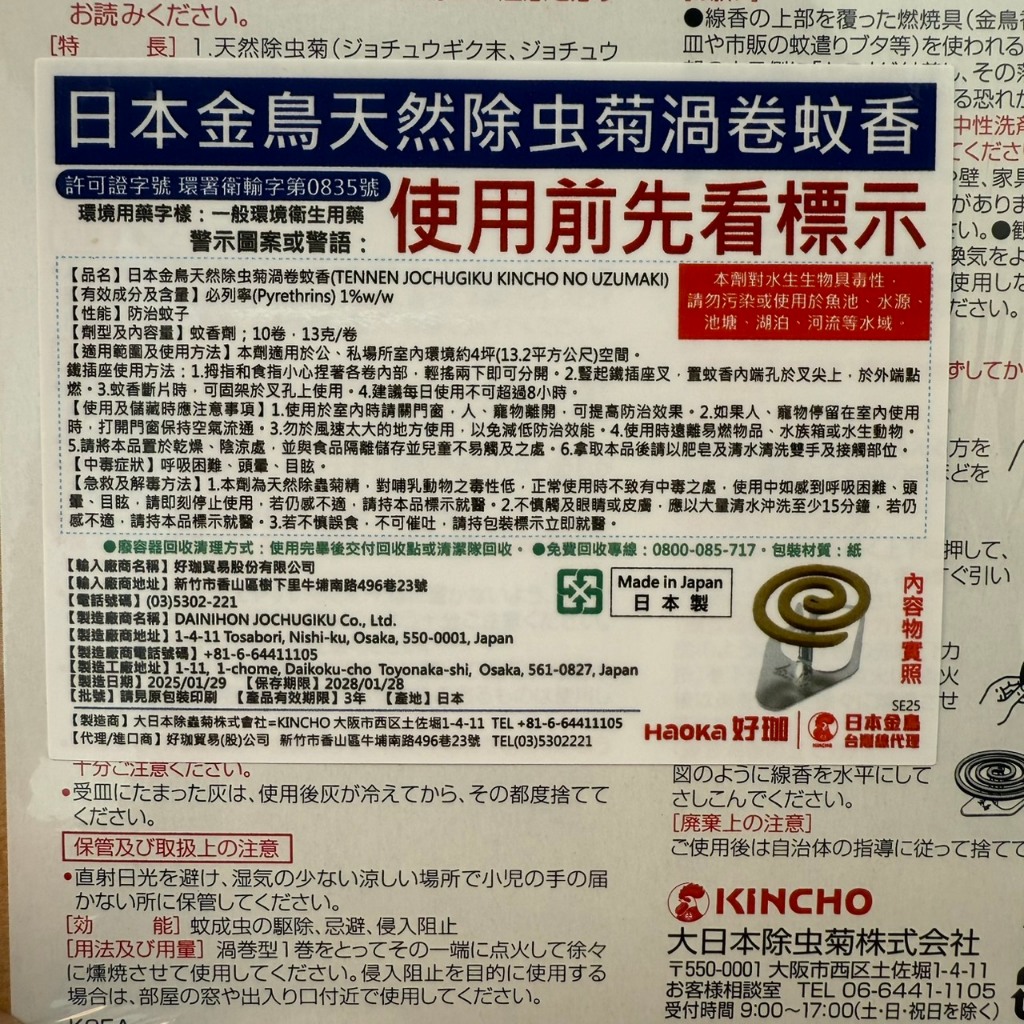 日本 金鳥 天然除蟲菊渦卷蚊香 蚊香 附蚊香支架 (10卷入) 天然除蟲菊蚊香 防蚊 驅蚊 露營10卷入Pest & Weed Controlcuzio