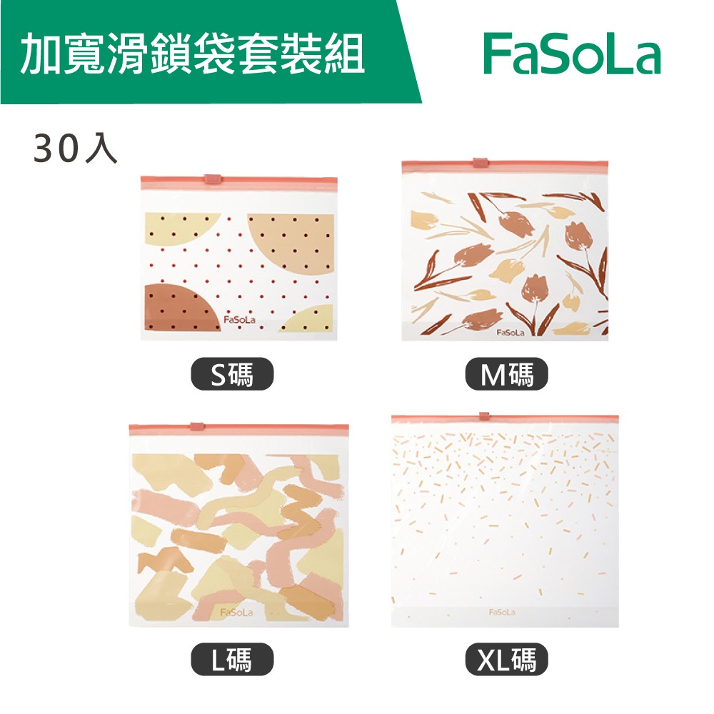 【FaSoLa】 多功能密封保鮮 加寬滑鎖袋套裝組 30入 公司貨 官方直營|密封袋 封口袋 食品保鮮袋 滑鎖袋 收納袋S+M (小號30枚)|L+XL (大號30枚)OthersFaSoLa品牌旗艦店