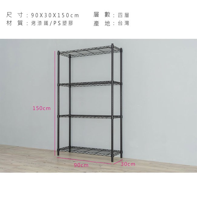 dayneeds 輕型四層置物架90x30x150公分(烤漆兩色)層架 鐵力士架 收納架 廚房架 置物櫃黑色|白色Shelves & Racksdayneeds收納生活館