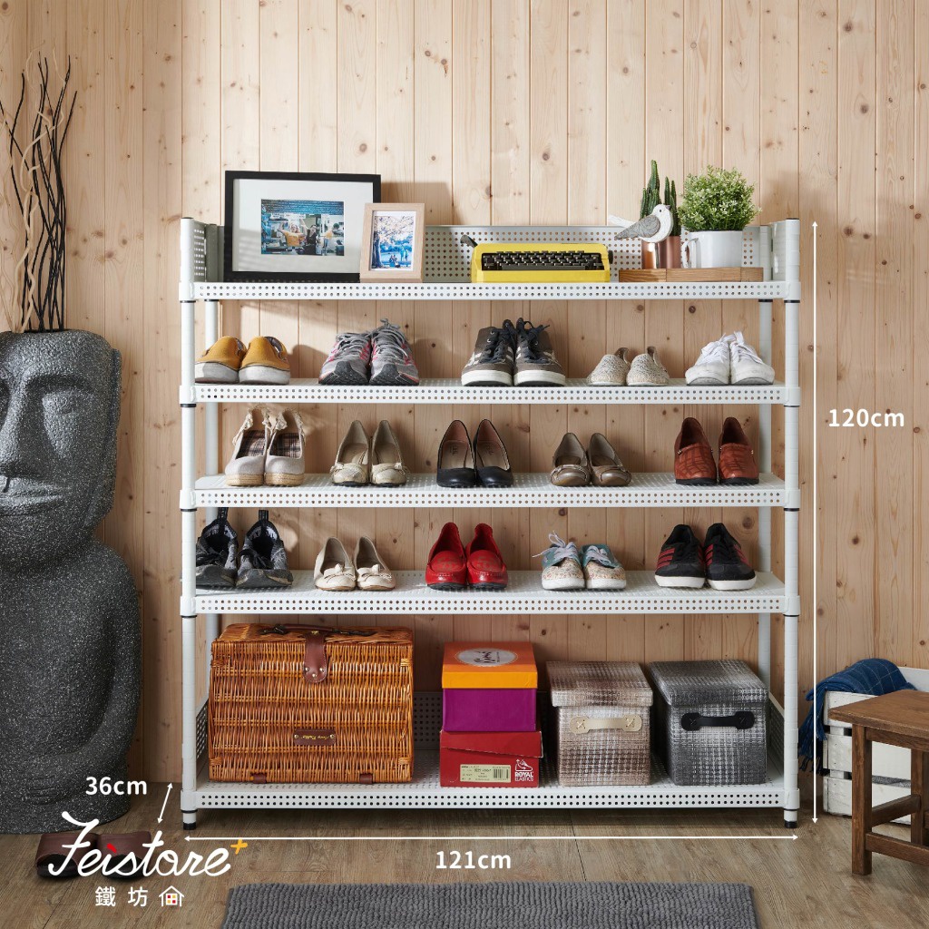 【鐵坊家具】五層玄關鞋架 鐵架 鞋櫃 鐵力士 收納 置物 波浪架 展示架 層架 鍍鉻架 組合架 工業風 可調白色|香檳色|黑色Cupboards & CabinetsFeistore 鐵坊家具/鐵架收納