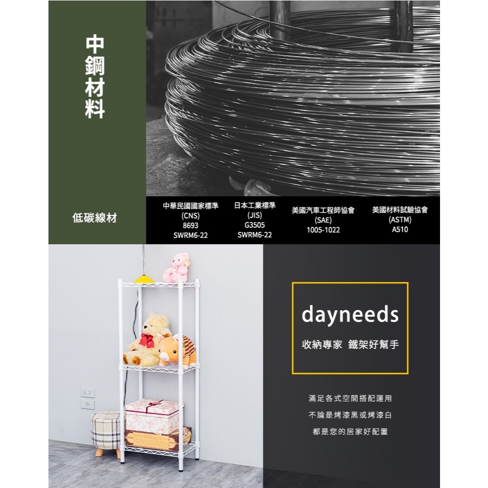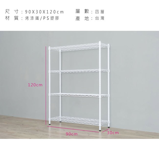 dayneeds 輕型四層置物架90x30x120公分(烤漆兩色)層架 鐵力士架 收納架 廚房架 置物櫃黑色|白色Shelves & Racksdayneeds收納生活館