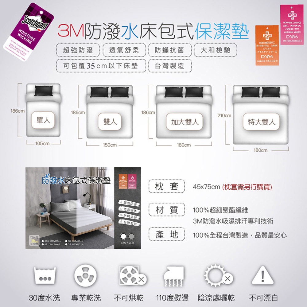 【岱思夢】3M防潑水技術保潔墊 單人 雙人 加大 特大 床包式 枕頭套 日本大和抗菌 床墊套 防蹣抗菌 [現貨]特大6×7尺-灰色|雙人5尺-白色|單人3.5尺-灰色|特大6×7尺-白色|單人3.5尺-白色|加大6尺-白色|加大6尺-灰色|雙人5尺-灰色Mattress Protectors & ToppersDESMOND岱思夢寢具【官方旗艦店】
