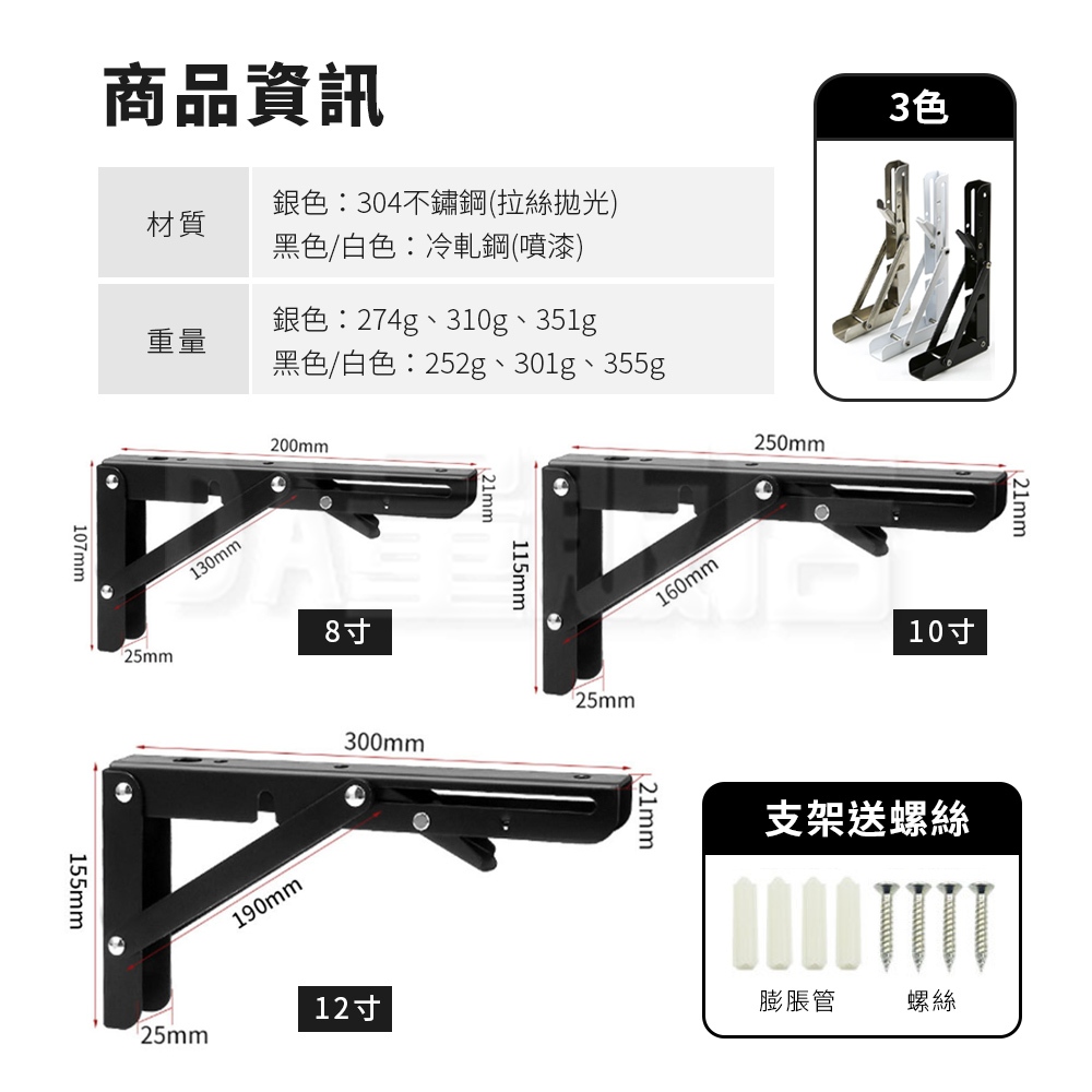 不鏽鋼折疊支架 壁掛置物架 層板架 牆壁置物架 牆架 折疊支架 置物架 三角置物架 層架壁掛 牆上置物架 層板置物架免釘膠 100g|8寸黑色 2入組|10寸黑色 2入組|12寸黑色 2入組|8寸白色 2入組|10寸白色 2入組|12寸白色 2入組|8寸銀色 2入組|10寸銀色 2入組|12寸銀色 2入組OthersDA量販店
