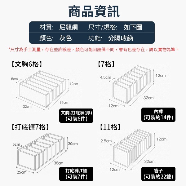 [限時特賣]衣櫃分隔收納袋 衣櫃分格收納 收納袋 分格收納盒 立體 收納神器灰色7格|打底褲7格|灰色6格Storage Boxes, Bags & BasketsDA量販店