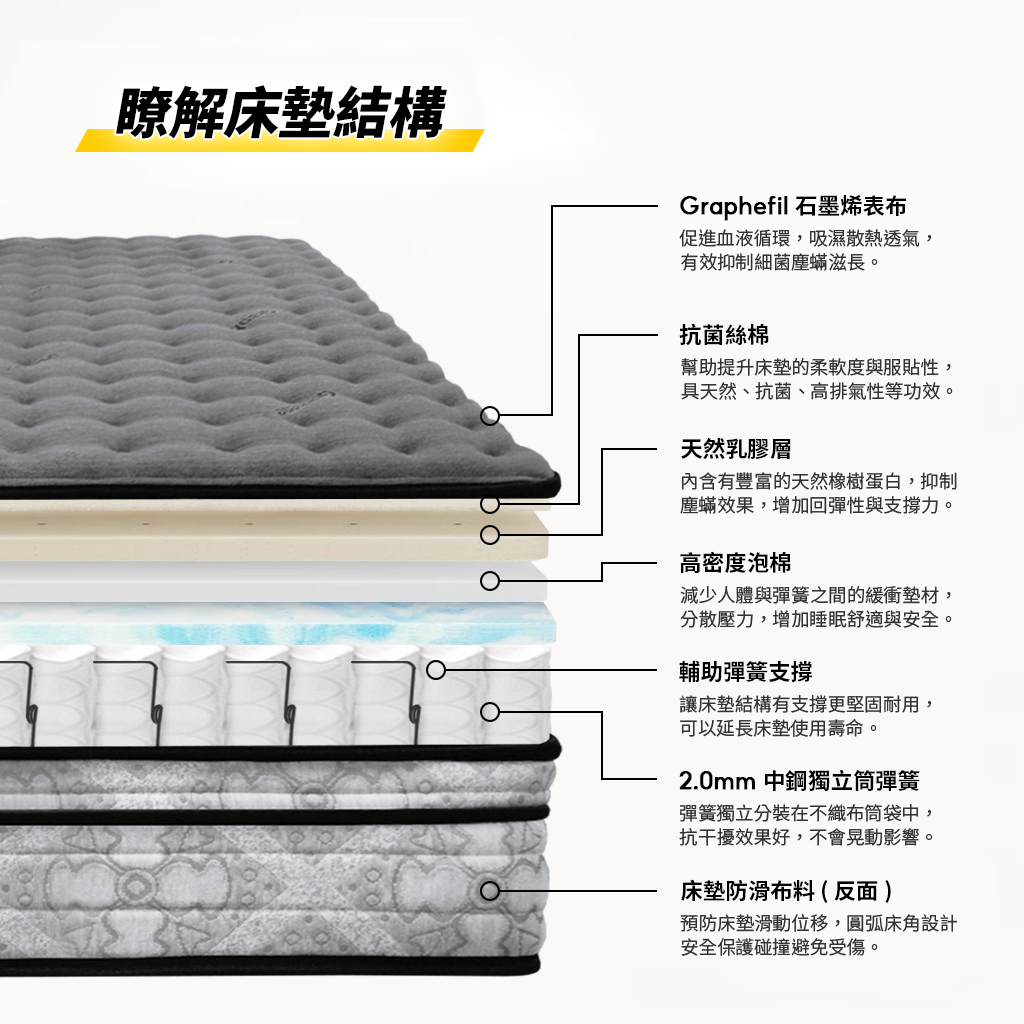 Dazo 天然乳膠 獨立筒床墊|腰酸背痛必備|Graphefil 石墨烯表布|抗干擾效果好|台灣製造,免運標準雙人 5 尺 + 送【防蟎保潔墊】|雙人加大 6 尺 + 送【防蟎保潔墊】|單人加大 3.5 尺 +送【防蟎保潔墊】MattressesDazo 得舒官方旗艦店