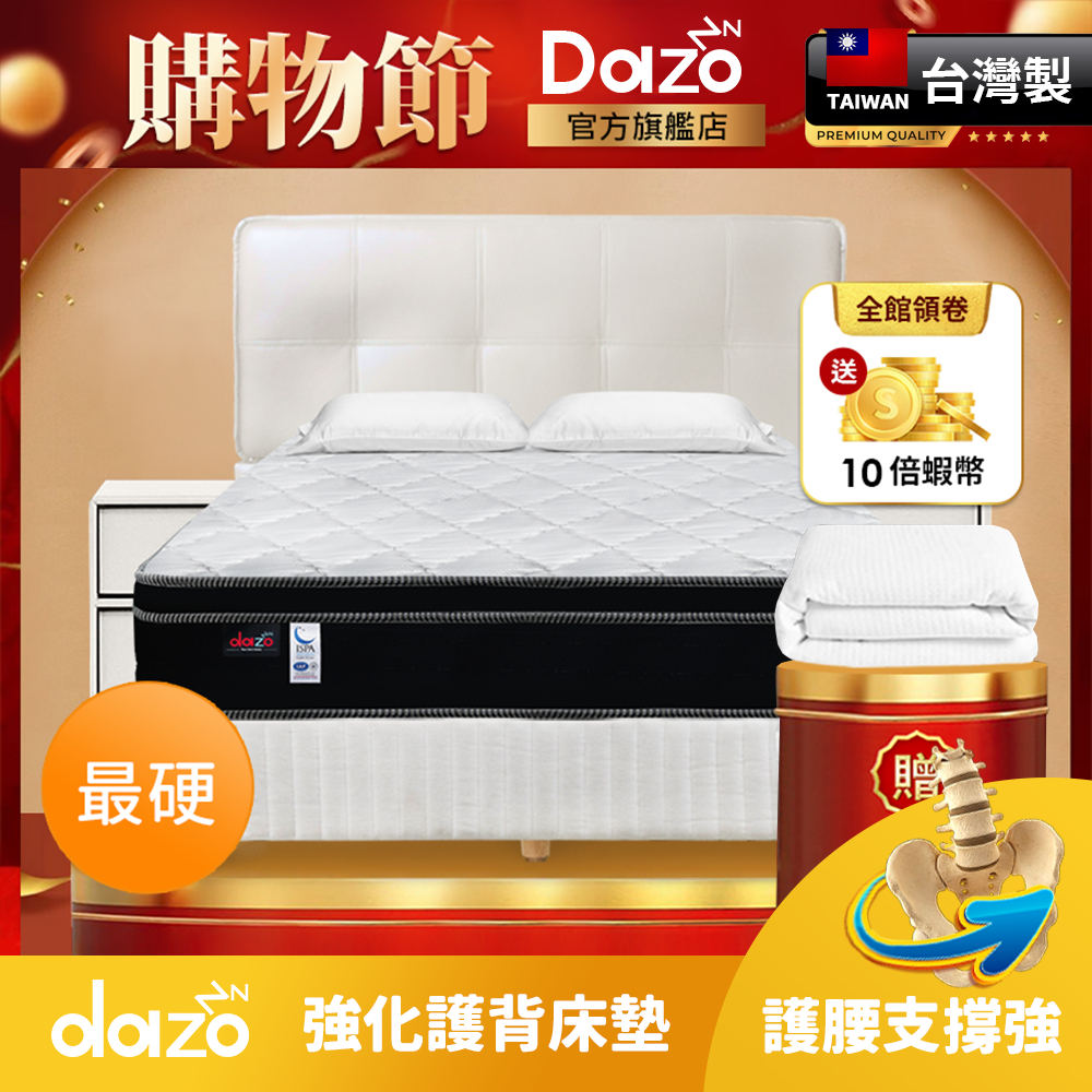 【 Dazo 】最硬|3M 防潑水 專利技術 冬夏二用 彈簧床墊 藤面涼蓆 床墊 台灣製造【 蝦幣 10 倍送 】標準雙人 5 尺 + 防蟎保潔墊|雙人加大 6 尺 + 防蟎保潔墊|單人加大 3.5 尺 + 防蟎保潔墊MattressesDazo 得舒官方旗艦店