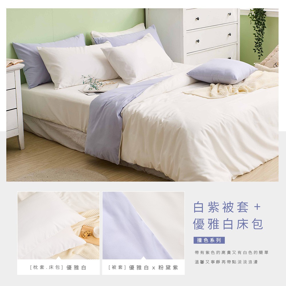 DUYAN竹漾 【文青簡約設計】舒柔棉 床包被套/鋪棉兩用被組-優雅白床包+白紫被套 台灣製雙人加大四件式兩用被床包組|單人床包二件組|單人床包被套三件組|雙人床包三件組|雙人加大床包三件組|雙人加大床包被套四件組|單人床包二件組+雙人薄被套|單人床包二件組+雙人兩用被|雙人床包被套四件組|雙人四件式舖棉兩用被床包組Bedsheets, Pillowcases & Bolster CasesDUYAN竹漾寢飾│網路寢具第一品牌