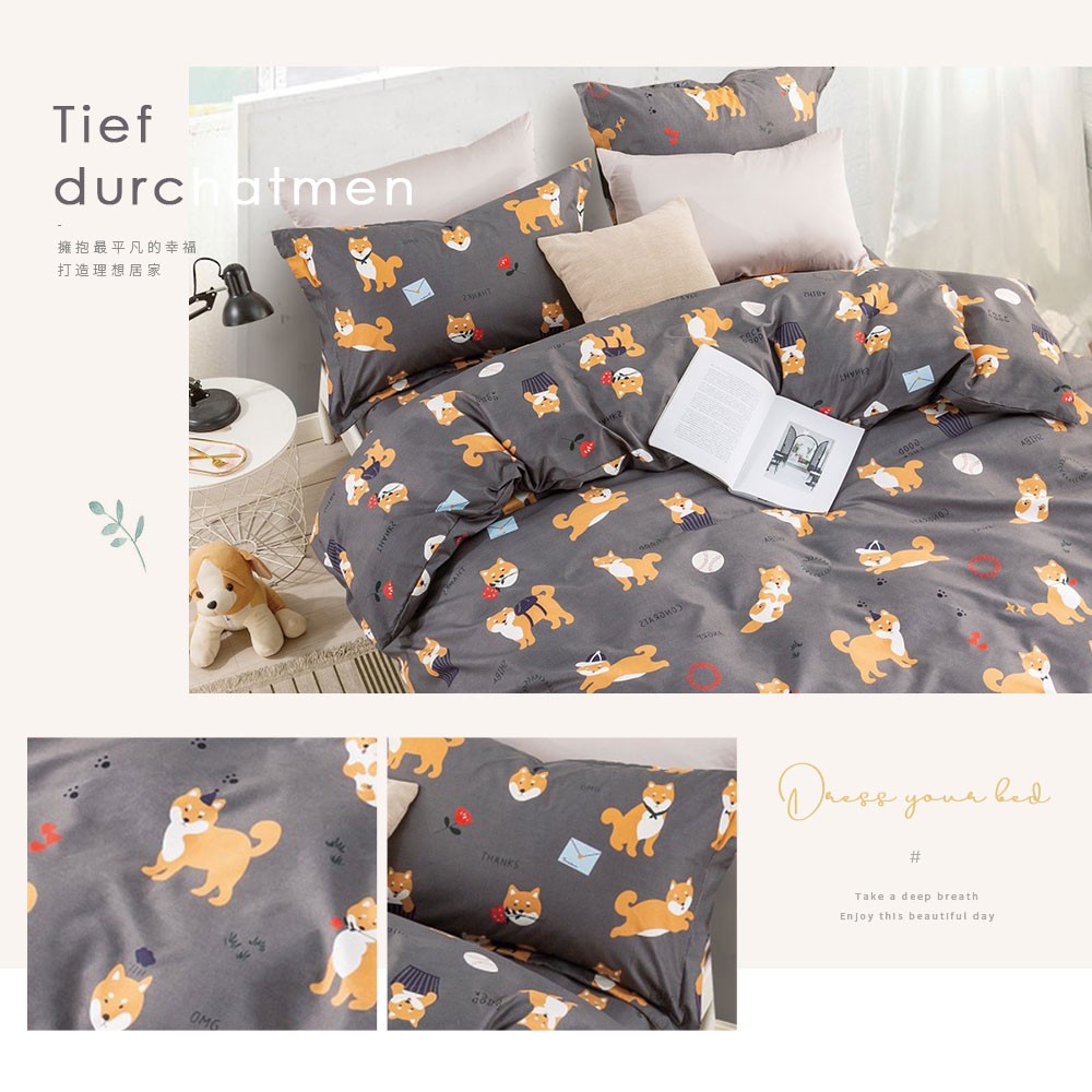 DUYAN竹漾 【文青簡約設計】舒柔棉 床包組/床包被套組/床包兩用被組-逗逗小柴 台灣製單人床包二件組|雙人加大床包三件組|單人二件組+雙人薄被套|雙人加大床包被套四件組|雙人加大四件式鋪棉兩用被床包組|雙人床包三件組|單人床包被套三件組|雙人床包被套四件組|單人三件式鋪棉兩用被床包組|雙人四件式鋪棉兩用被床包組Bedsheets, Pillowcases & Bolster CasesDUYAN竹漾寢飾│網路寢具第一品牌